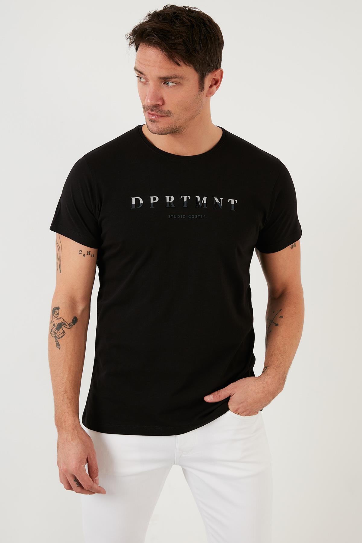 Buratti Baskılı Bisiklet Yaka Pamuklu Slim Fit Erkek T Shirt 541DPRTMNT24 SİYAH
