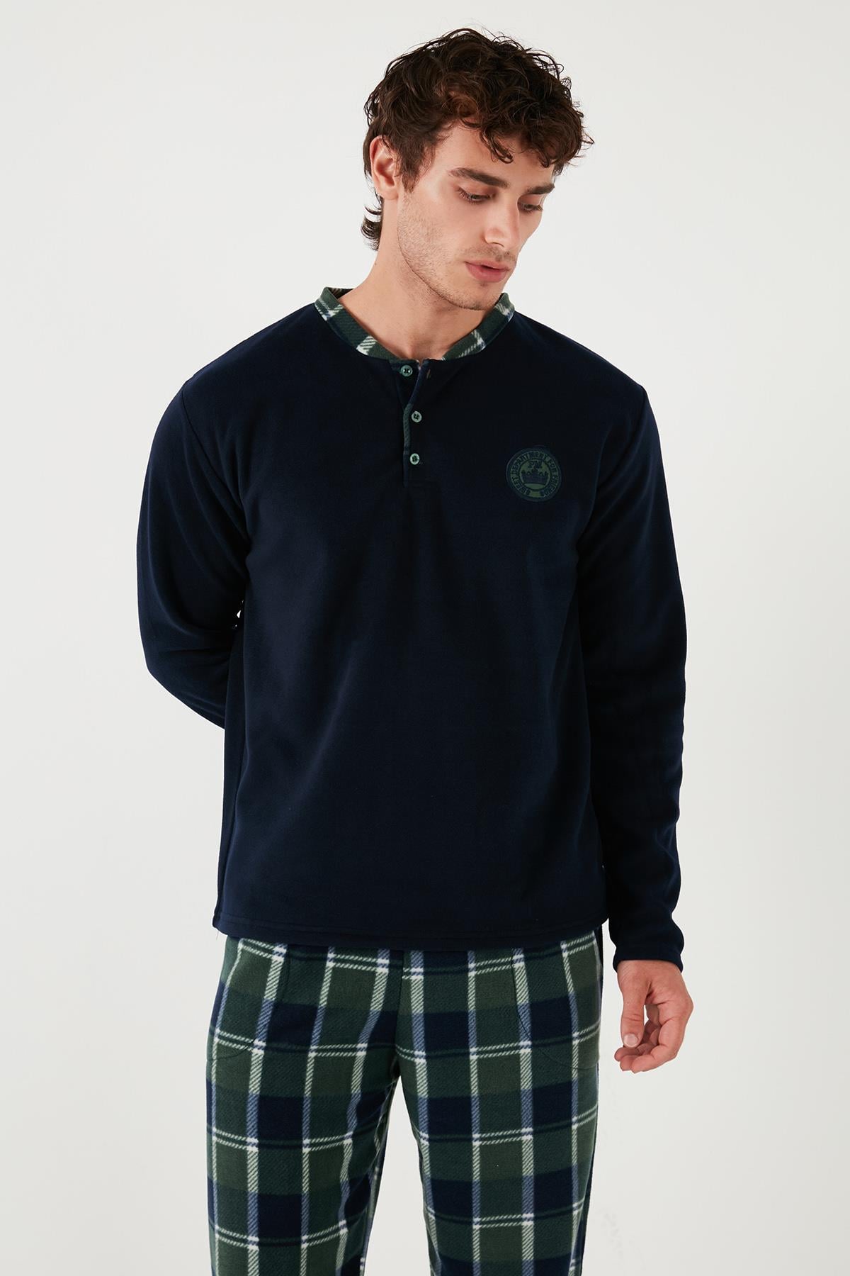 Buratti Ekose Regular Fit Bisiklet Yaka Kışlık Polar Erkek Pijama Takımı 609610013W4 LACİVERT
