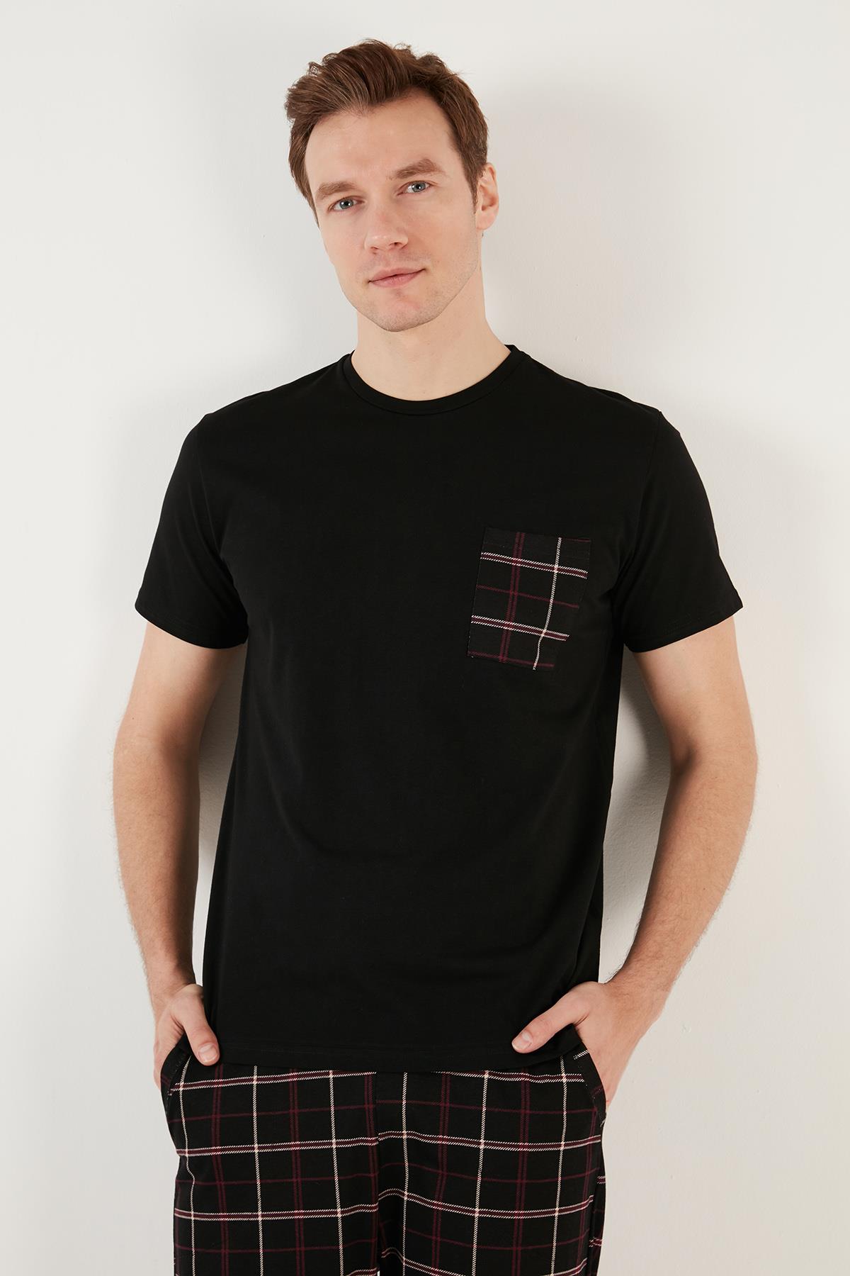 Buratti Ekoseli Pamuklu Regular Fit Kısa Kollu Erkek Pijama Takımı 6572002 SİYAH