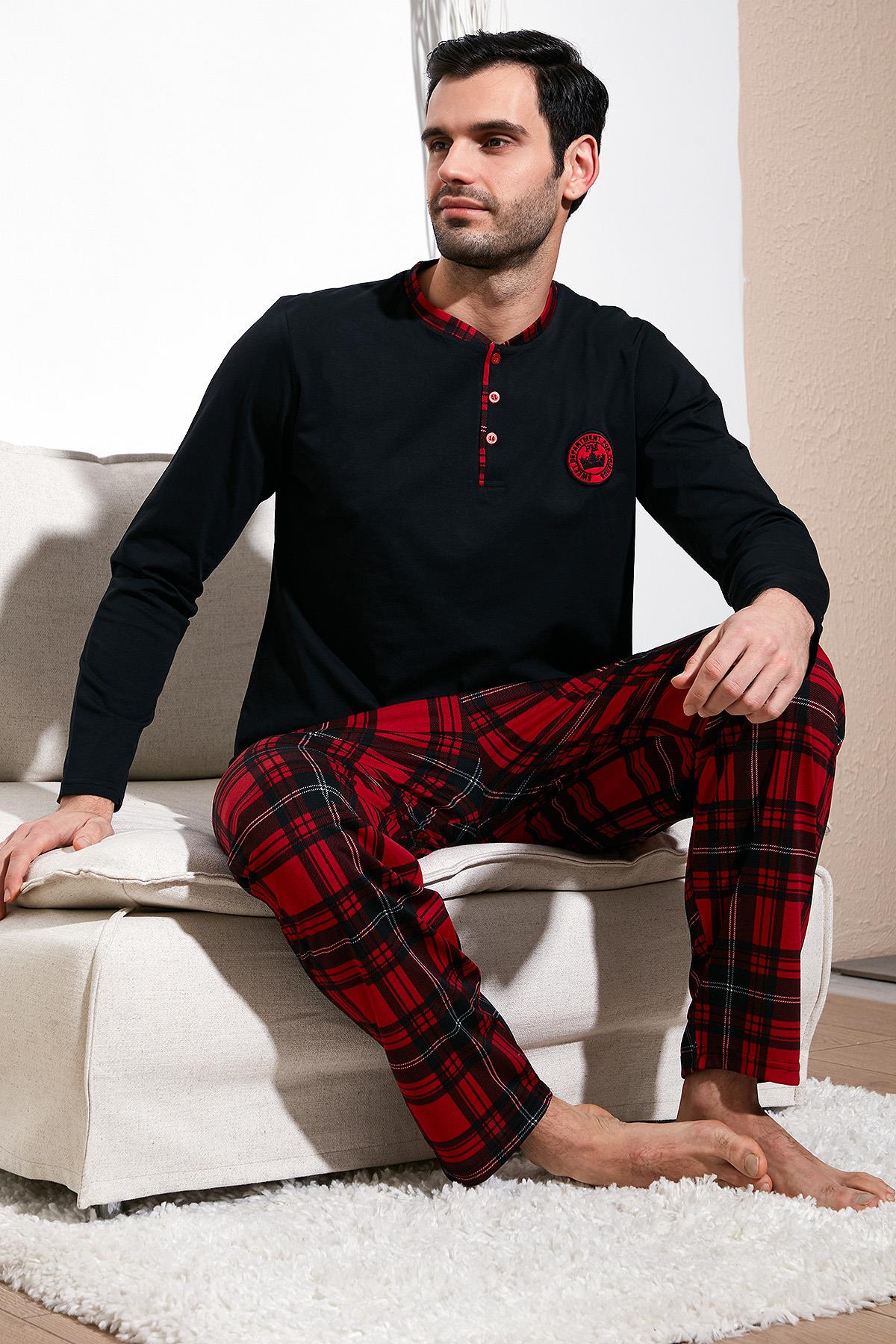 Buratti Ekoseli Pamuklu Regular Fit Uzun Kollu Erkek Pijama Takımı 60961004 SİYAH