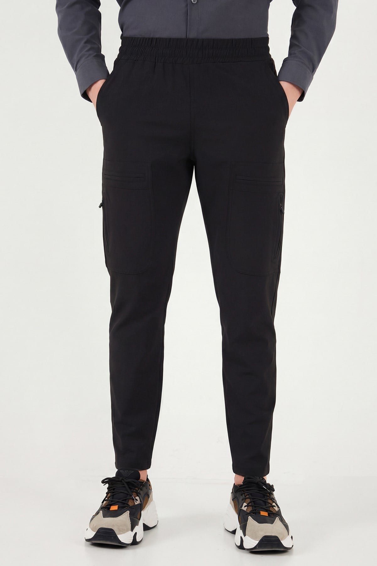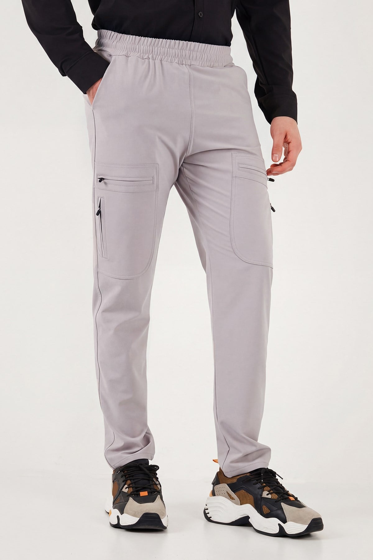 Buratti Normal Kalıp Kargo Cepli Lastikli Bel Trekking ve Kurye 2'li Paket Erkek Pantolon 693710S2 SİYAH-GRİ