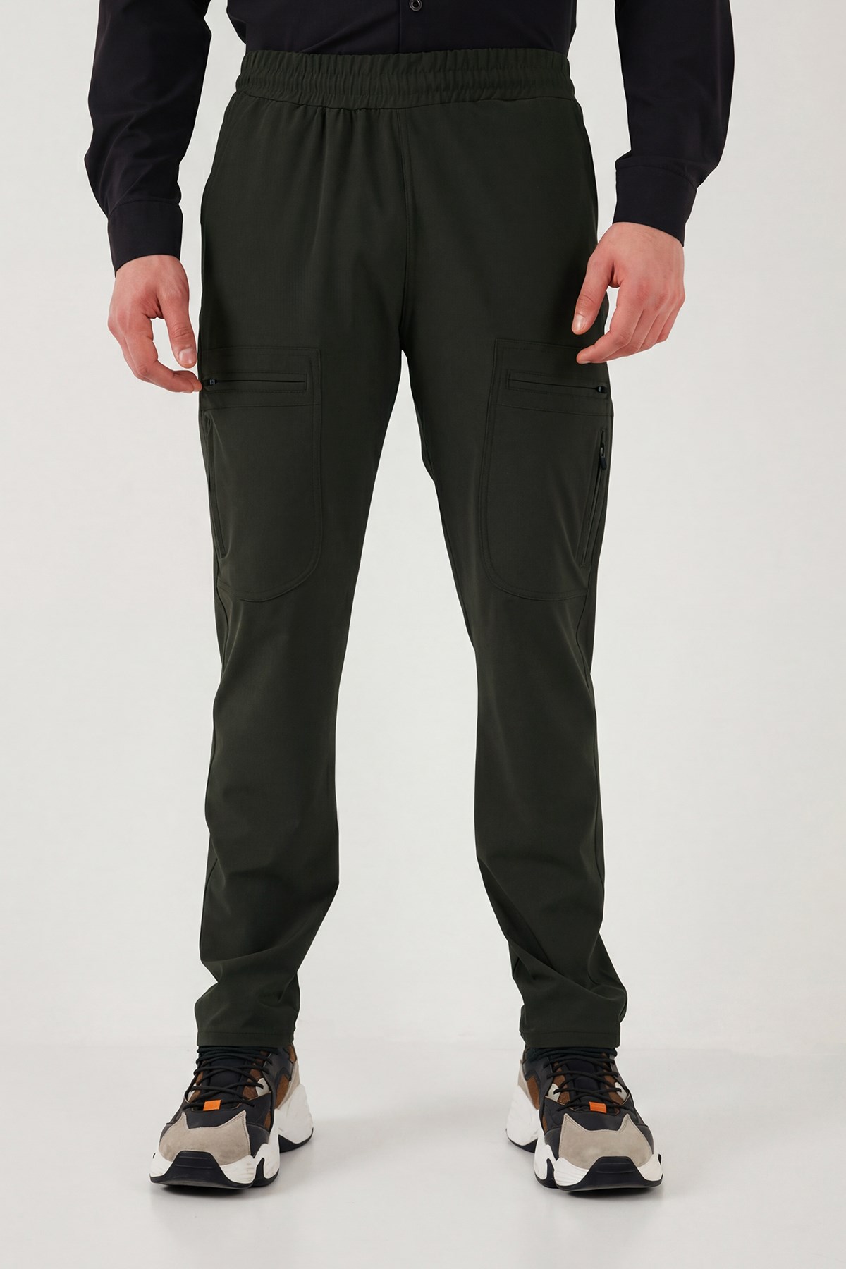Buratti Normal Kalıp Kargo Cepli Lastikli Bel Trekking ve Kurye 3'lü Paket Erkek Pantolon 693710S3 GRİ FÜME HAKİ