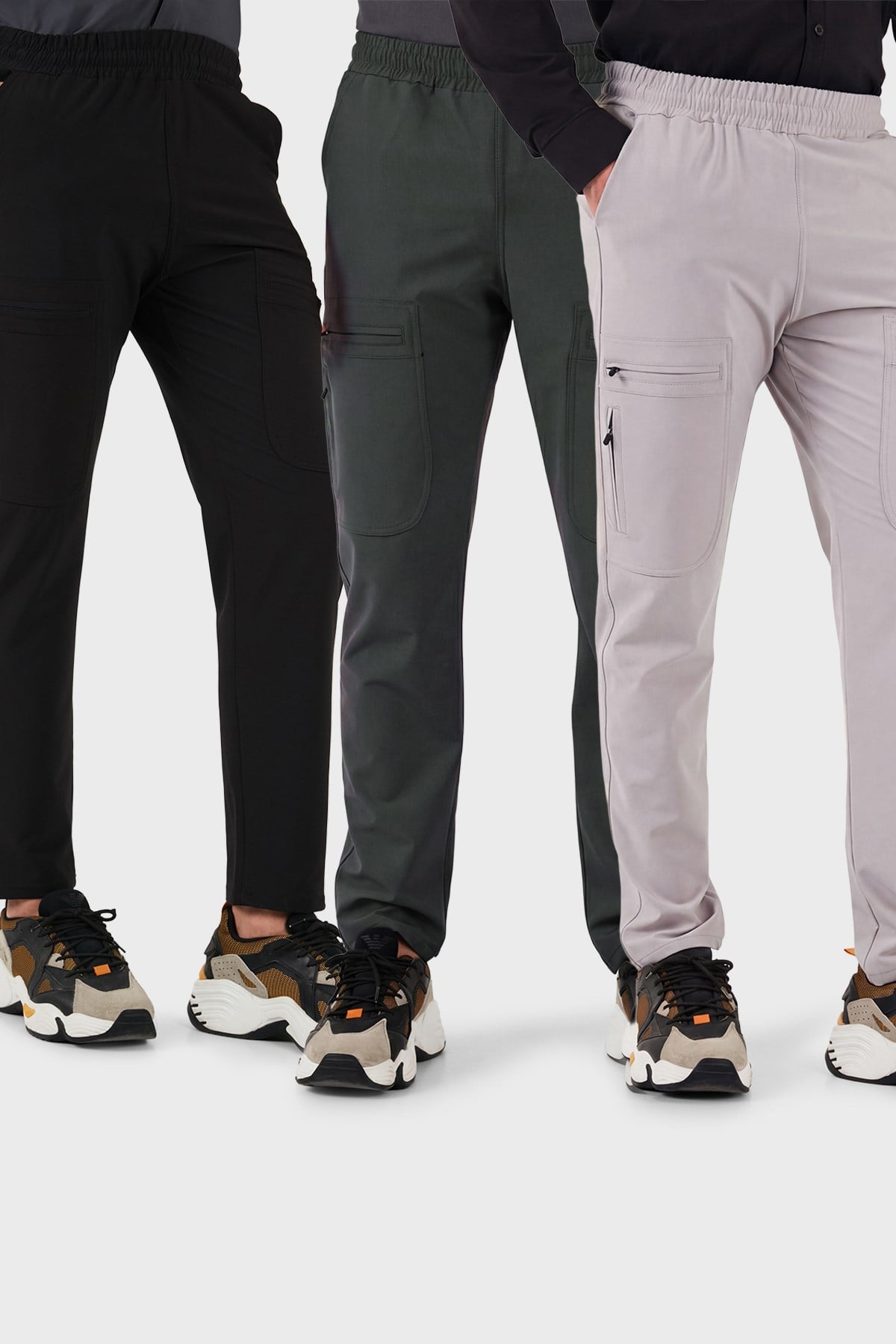 Buratti Normal Kalıp Kargo Cepli Lastikli Bel Trekking ve Kurye 3'lü Paket Erkek Pantolon 693710S3 SİYAH GRİ FÜME