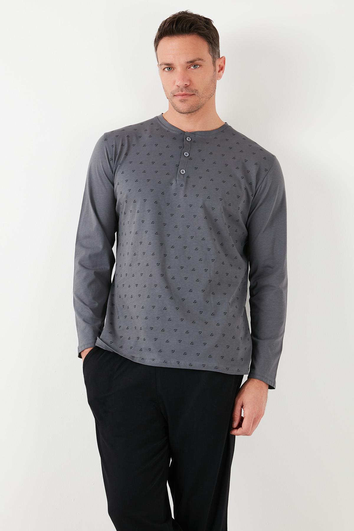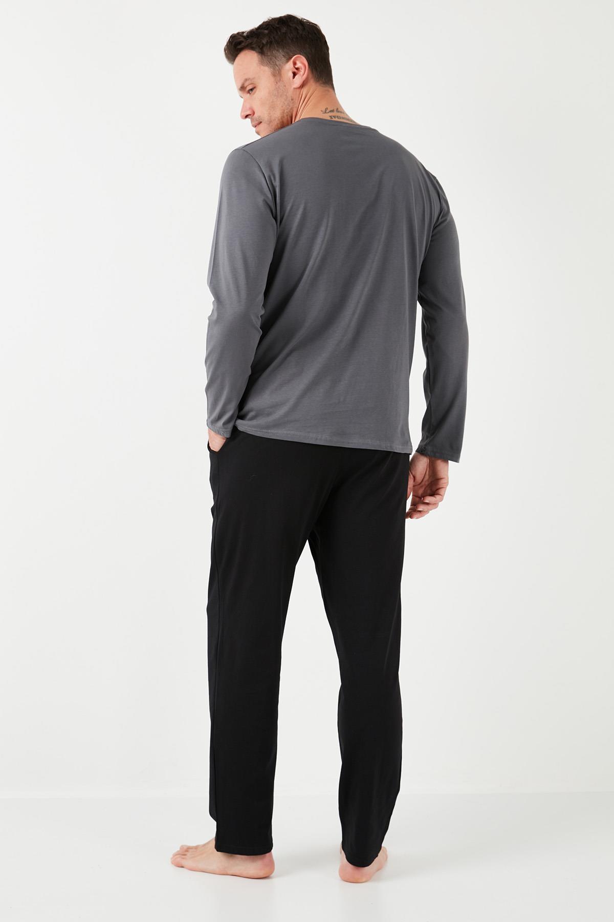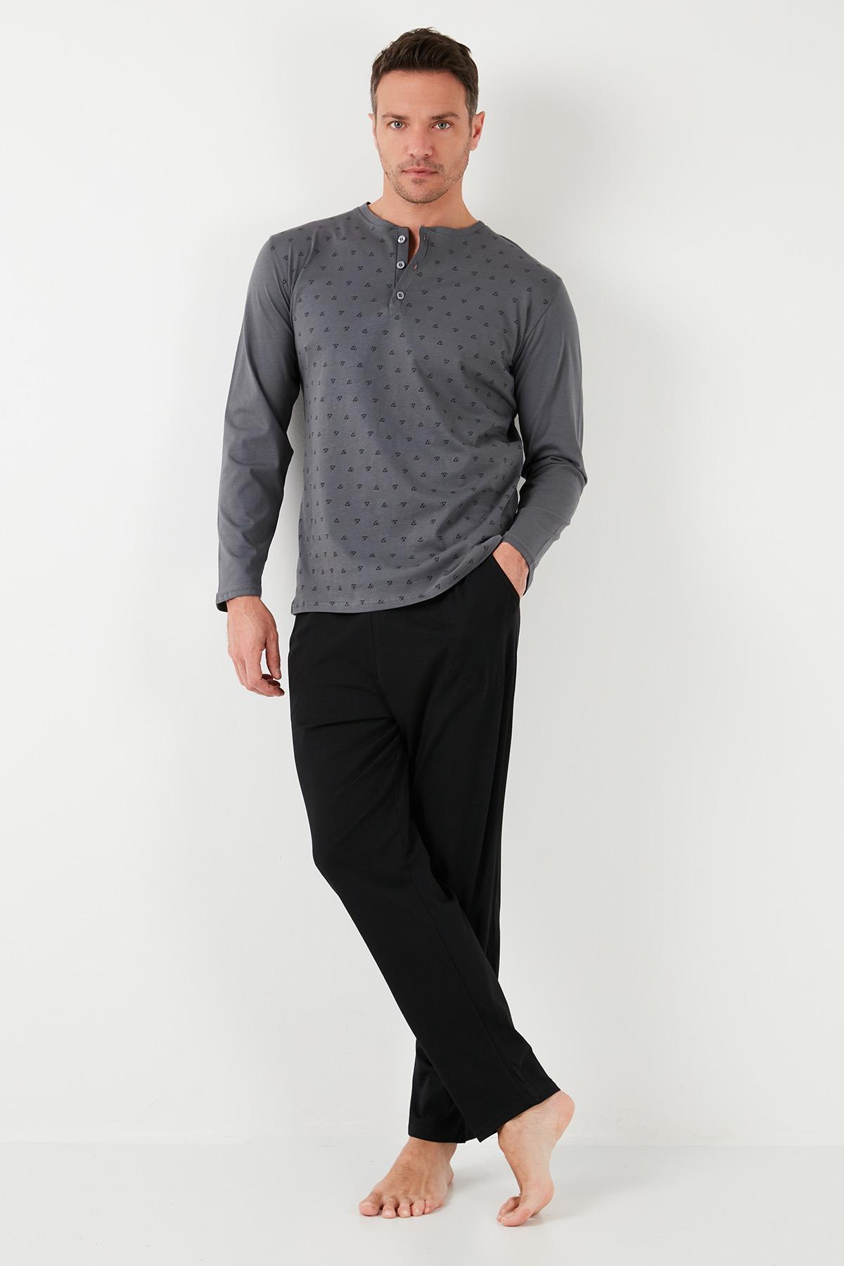 Buratti Pamuklu Beli Lastikli Regular Fit Uzun Kollu Erkek Pijama Takımı 6572008 FÜME
