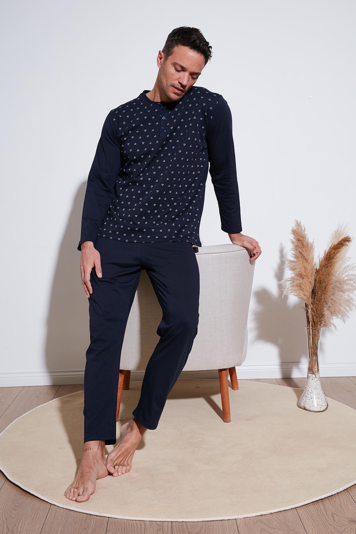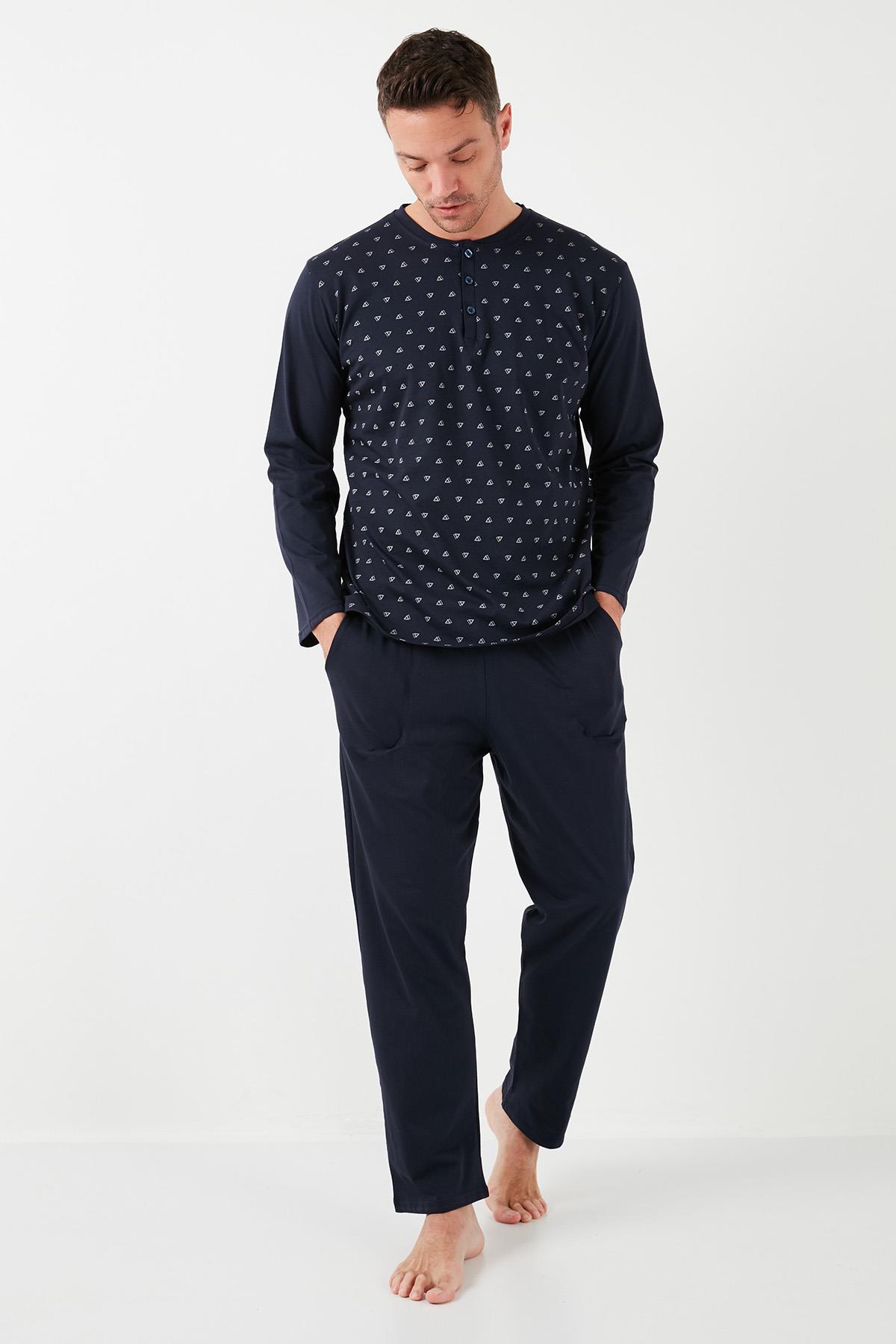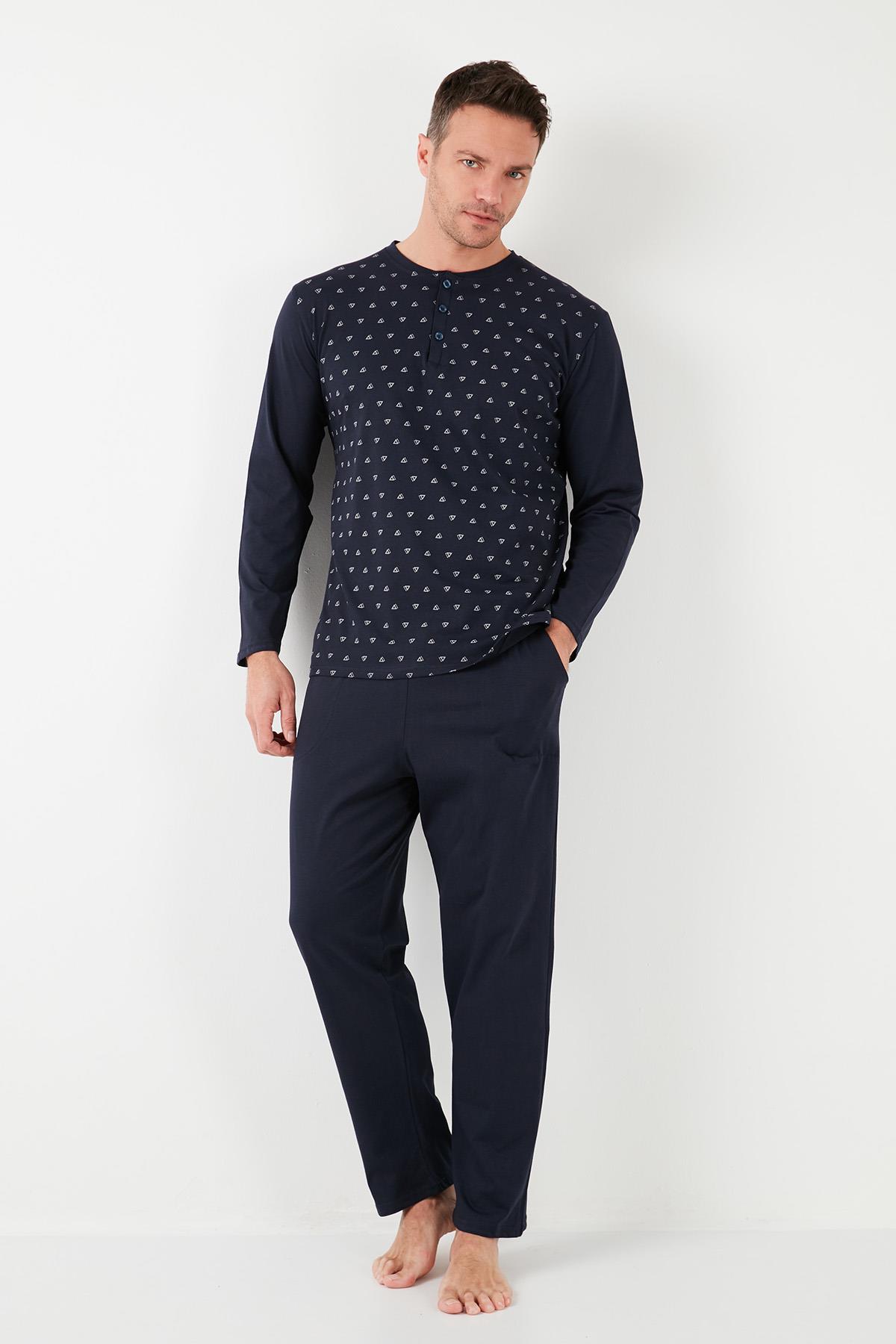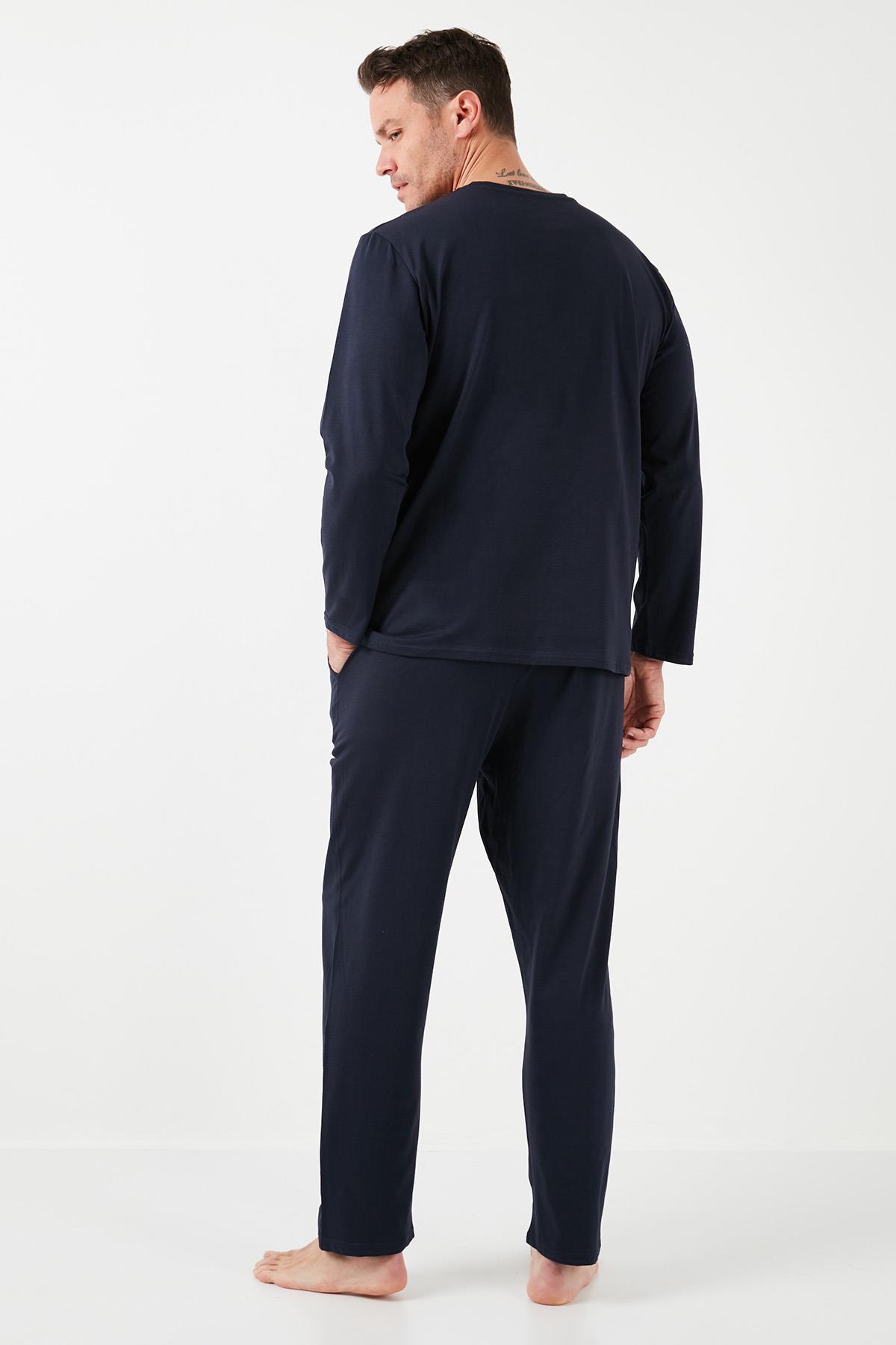 Buratti Pamuklu Beli Lastikli Regular Fit Uzun Kollu Erkek Pijama Takımı 6572008 LACİVERT