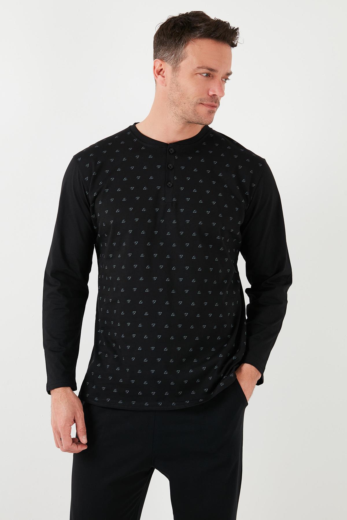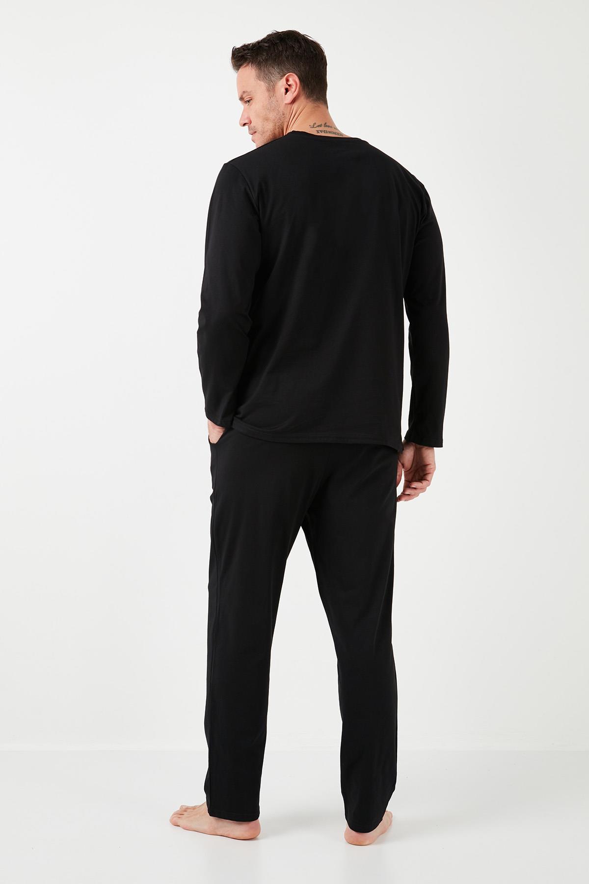 Buratti Pamuklu Beli Lastikli Regular Fit Uzun Kollu Erkek Pijama Takımı 6572008 SİYAH