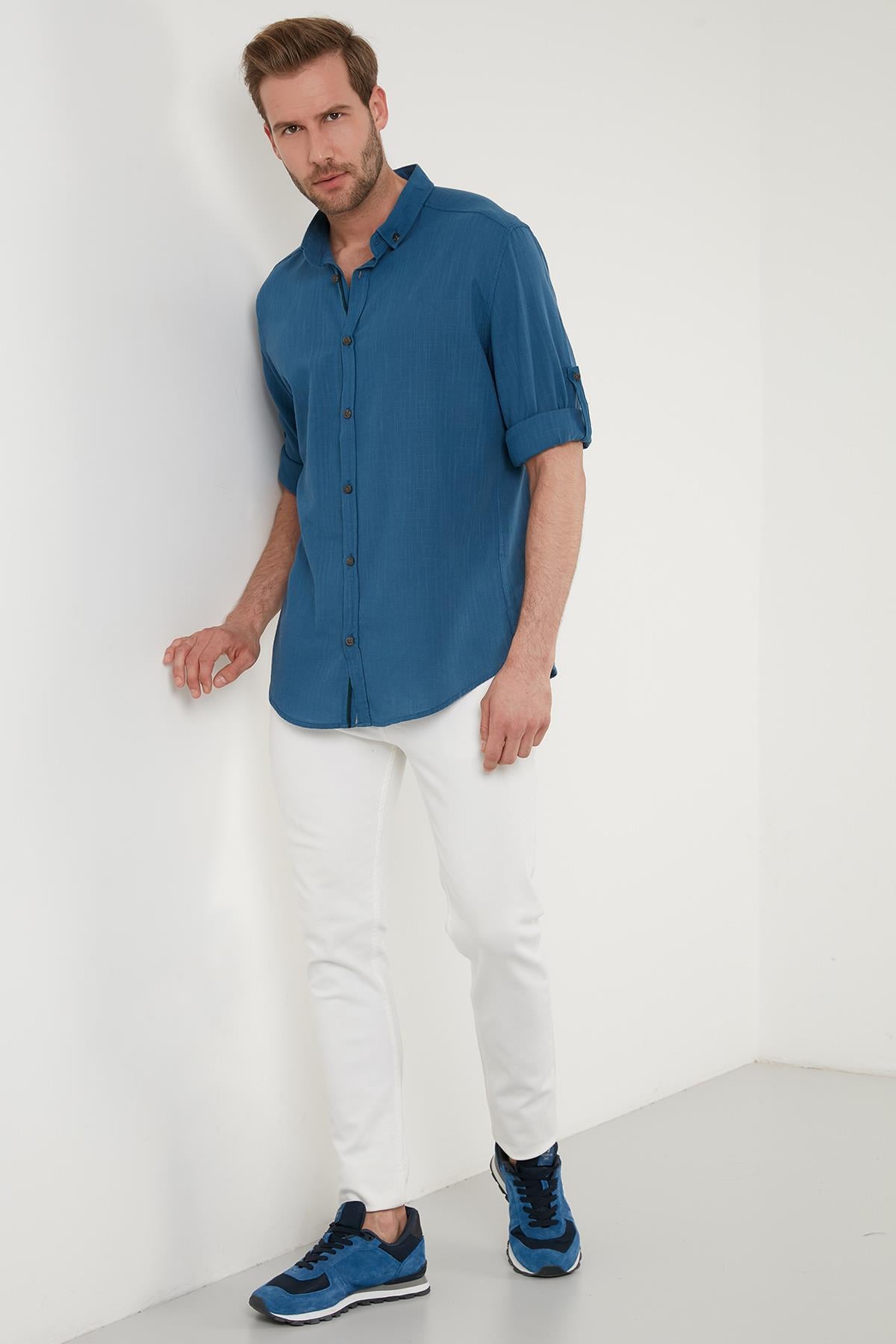 Buratti Pamuklu Regular Fit Düğmeli Yaka Erkek Gömlek CF20S111871 İNDİGO