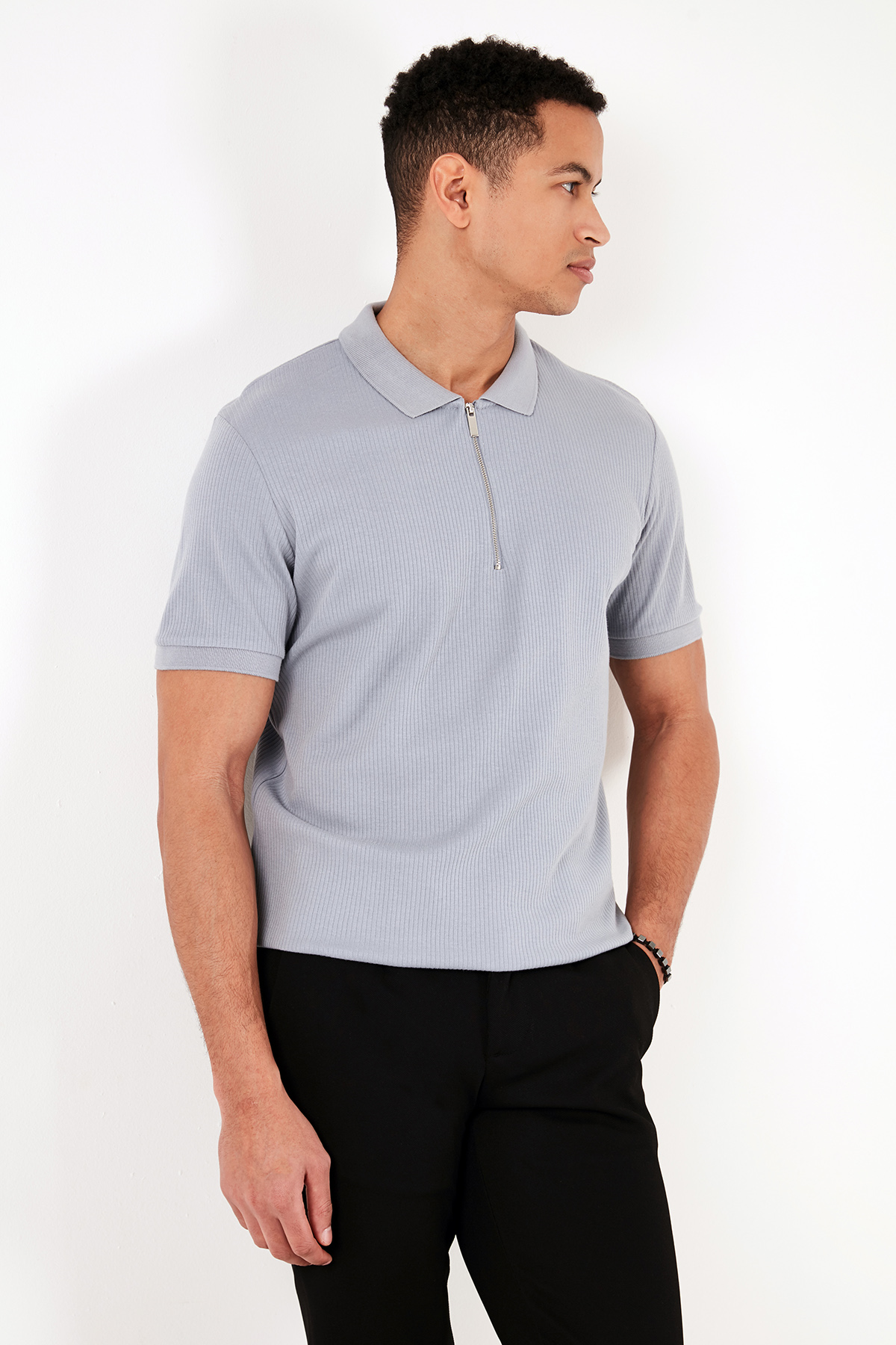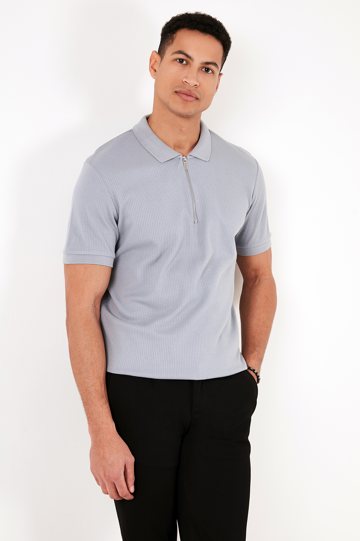 Buratti Pamuklu Regular Fit Fermuarlı Erkek Polo Yaka T Shirt 5902738 AÇIK GRİ