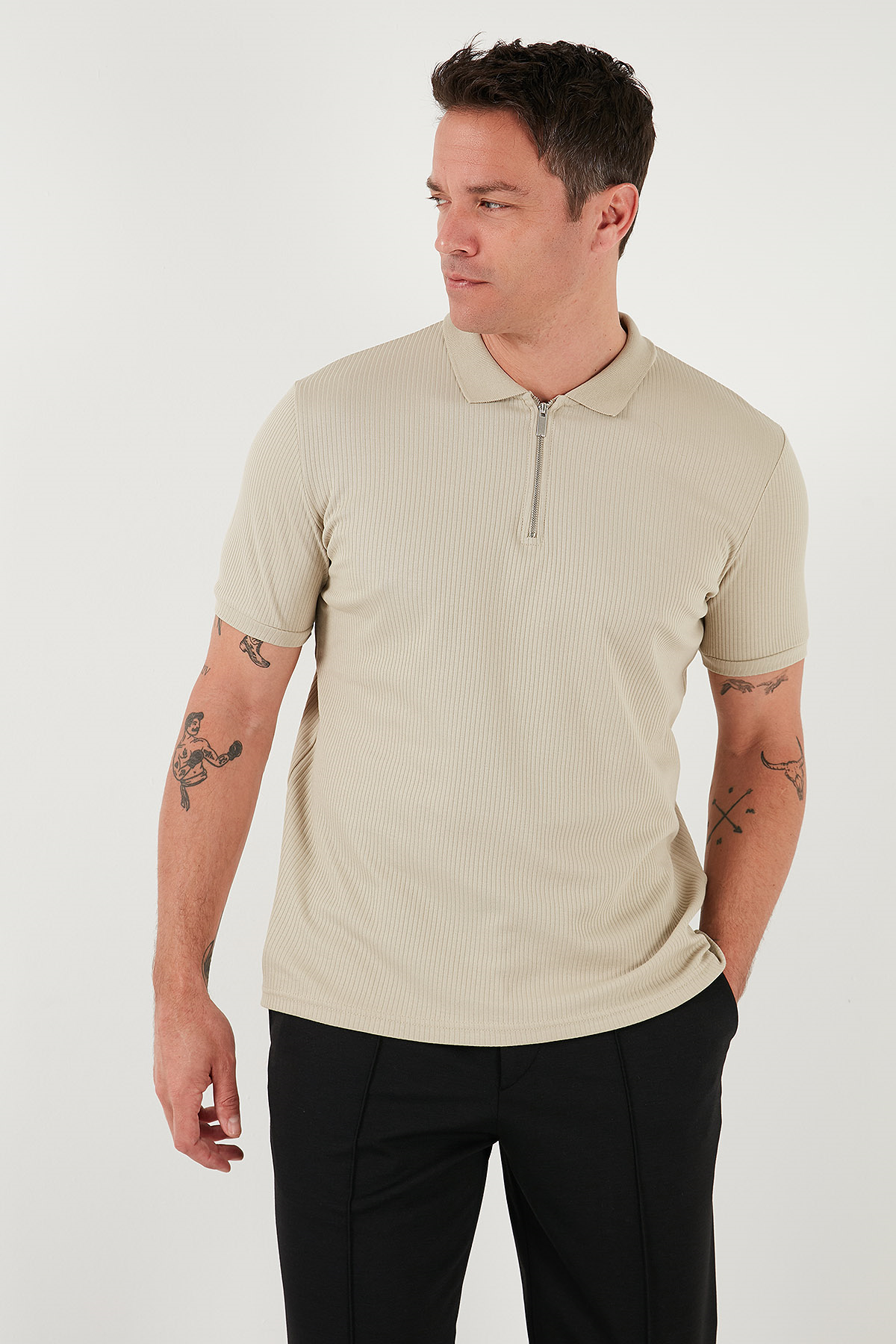 Buratti Pamuklu Regular Fit Fermuarlı Erkek Polo Yaka T Shirt 5902738 VİZON