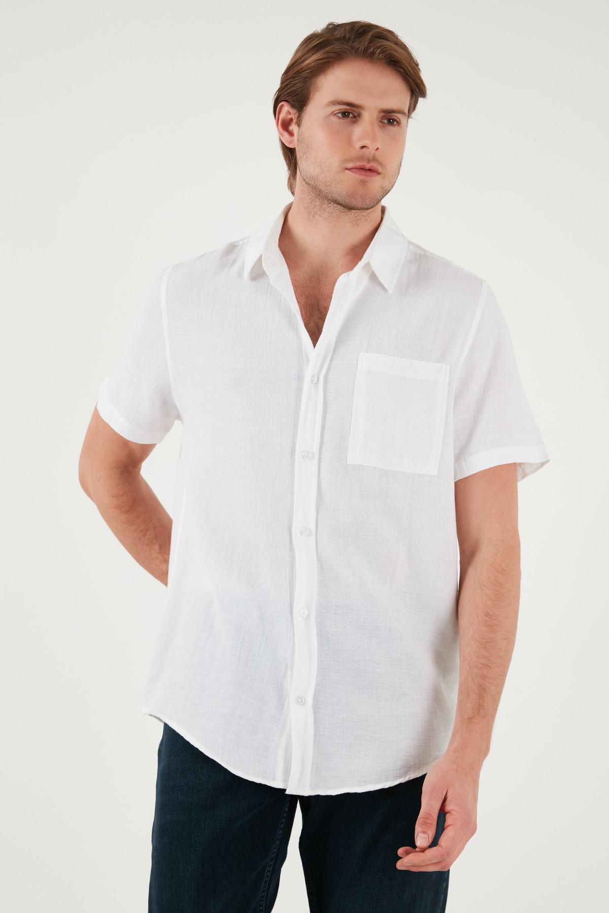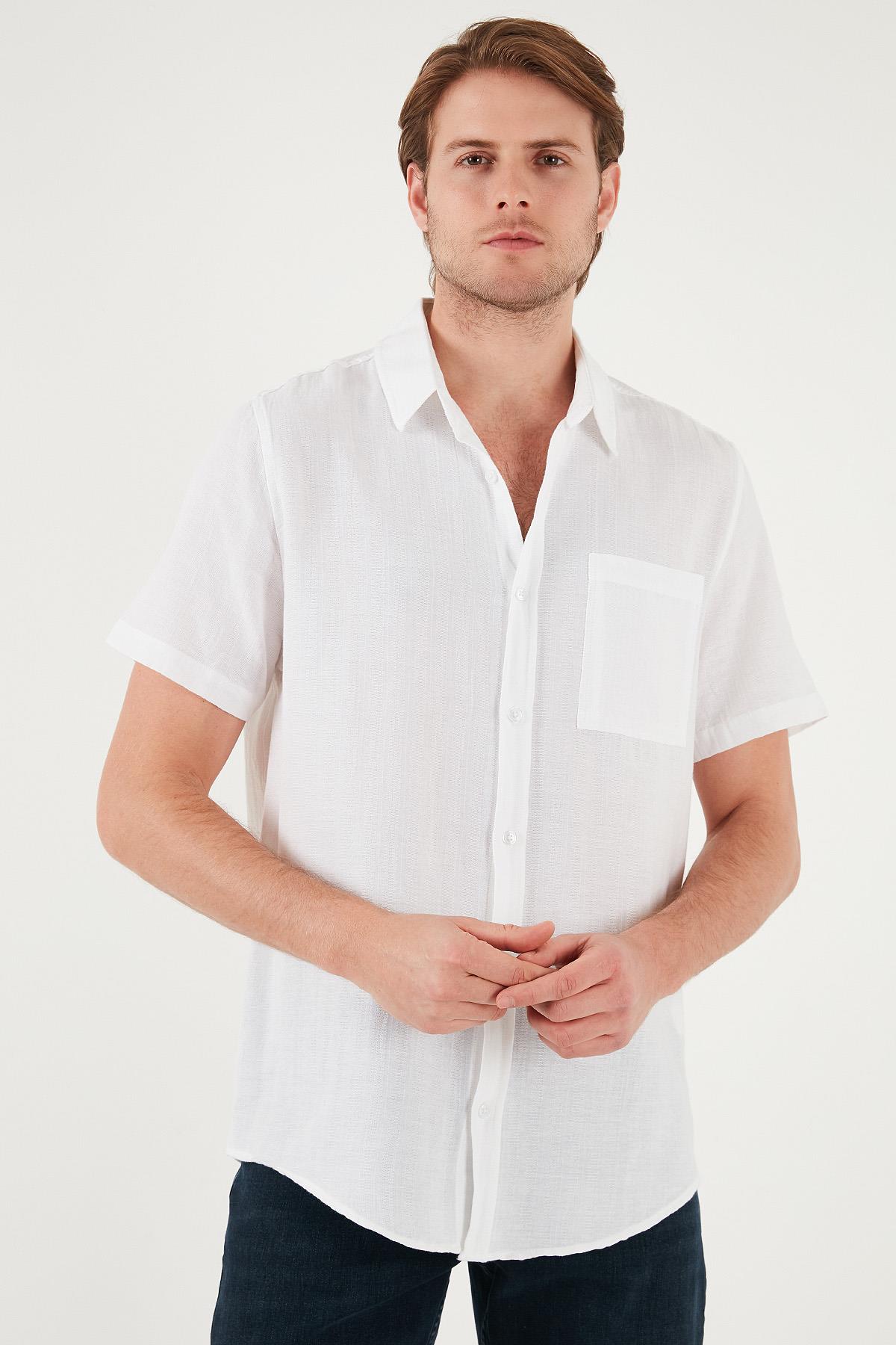 Buratti Pamuklu Regular Fit Tek Cepli Kısa Kol Erkek Gömlek CF25S128230 BEYAZ