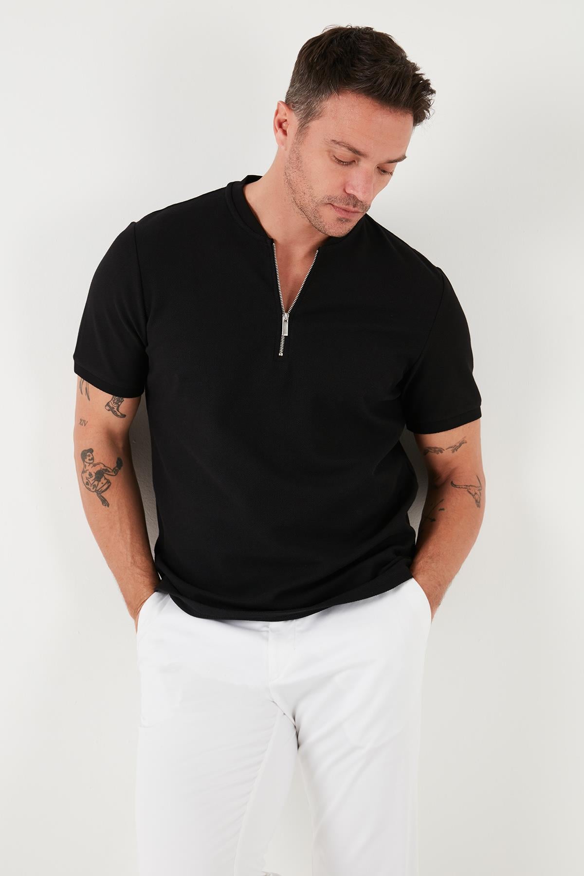 Buratti Pamuklu Regular Fit Yarım Fermuarlı Erkek T Shirt 5902653 SİYAH