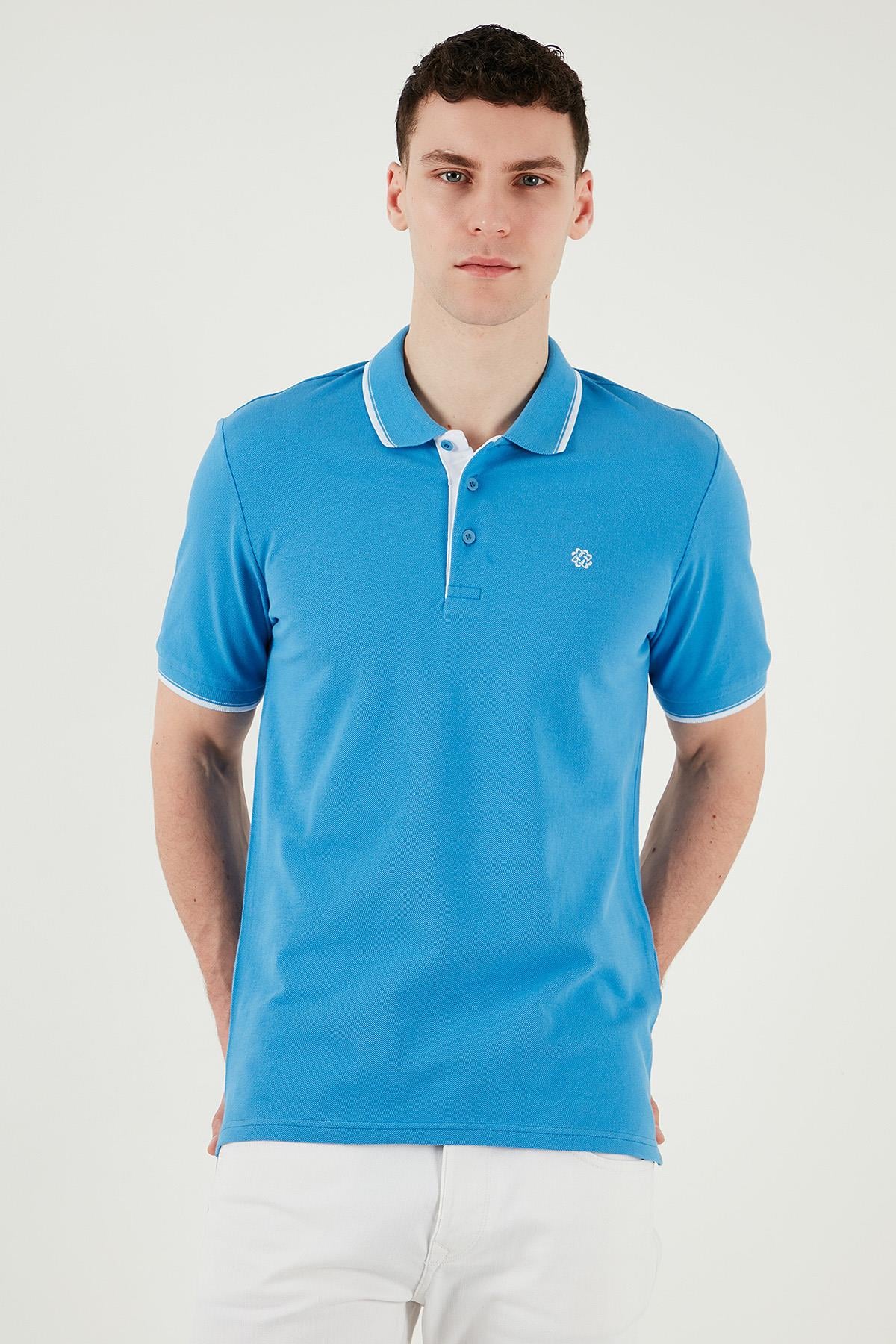 Buratti Pamuklu Slim Fit Şerit Detaylı Düğmeli Polo Yaka 3'lü Paket Erkek T Shirt 5902118S3 AquaMavi-Koyu Mavi-Siyah Beyaz