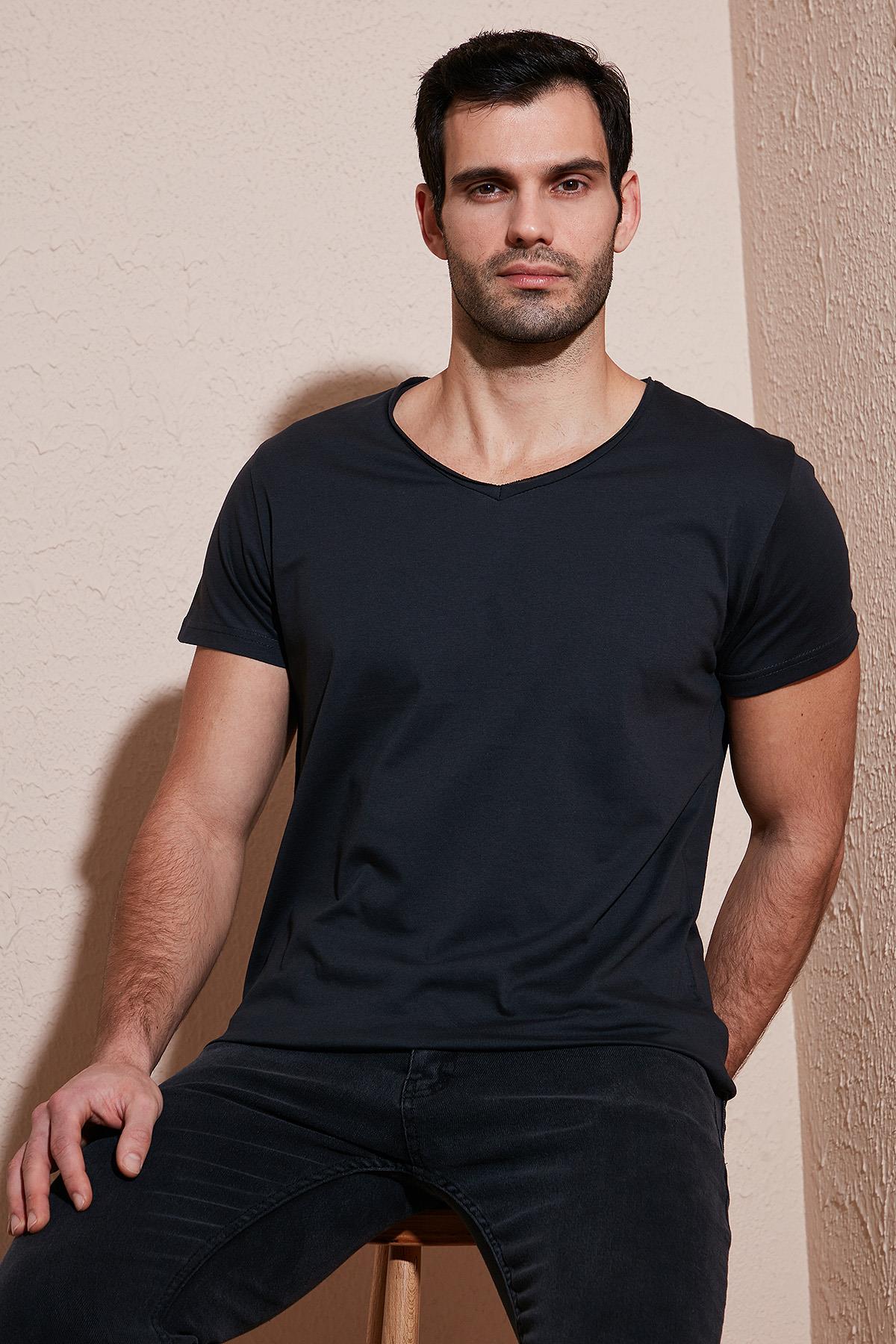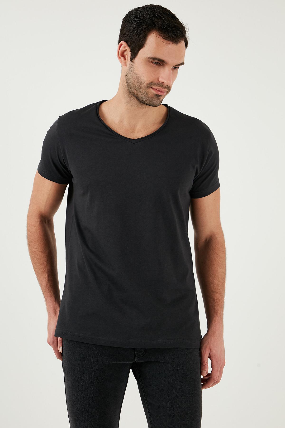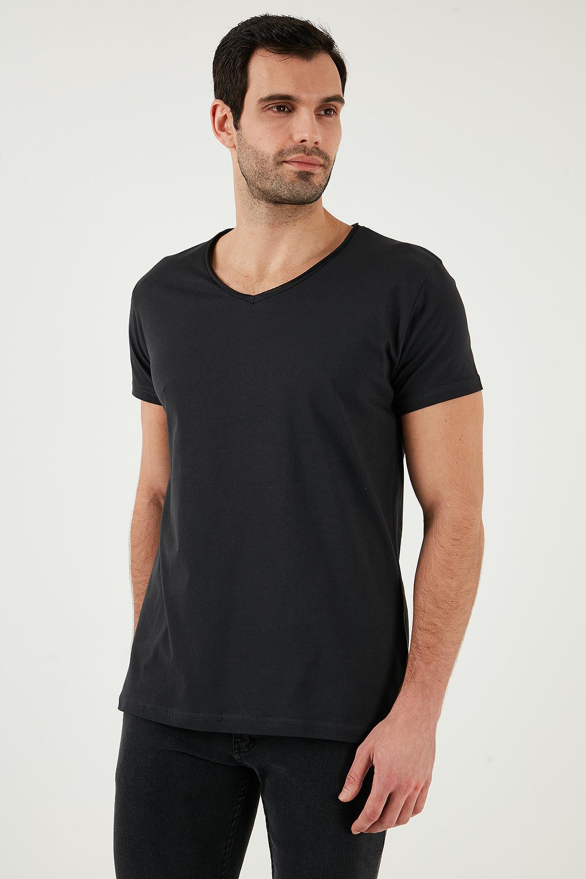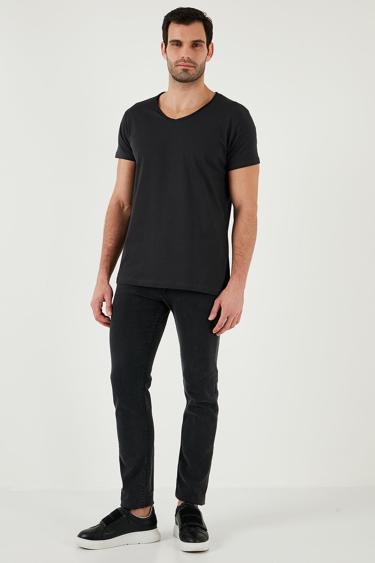 Buratti Pamuklu Slim Fit V Yaka Basic Erkek T Shirt 5412001 FÜME