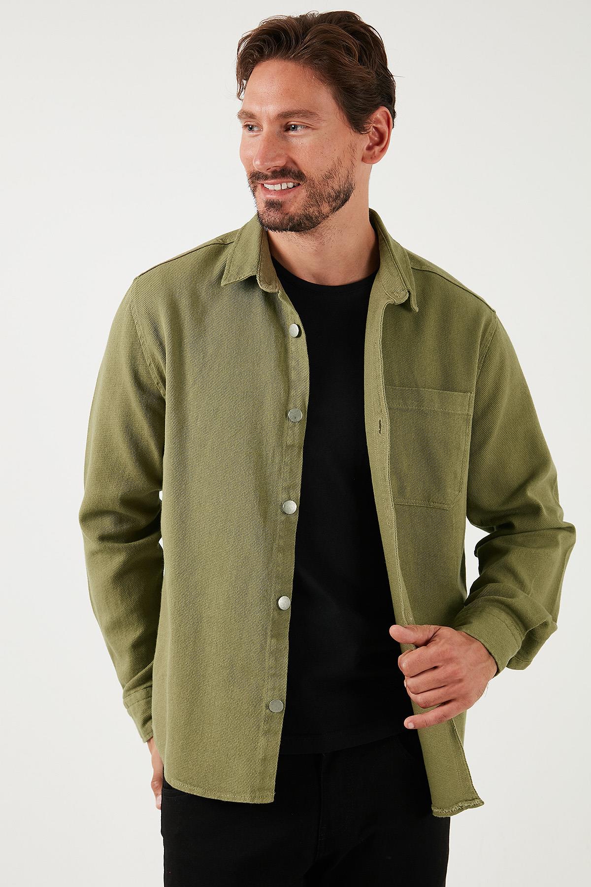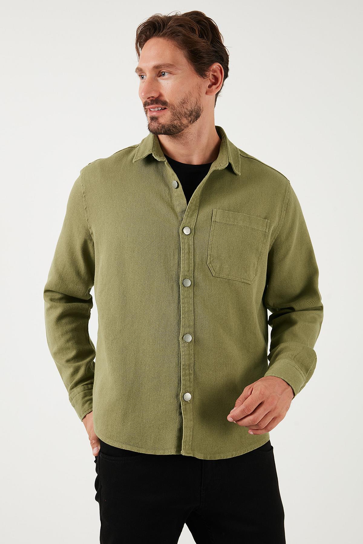 Buratti Pamuklu Tek Cepli Regular Fit Erkek Gömlek CF25W129140 HAKİ