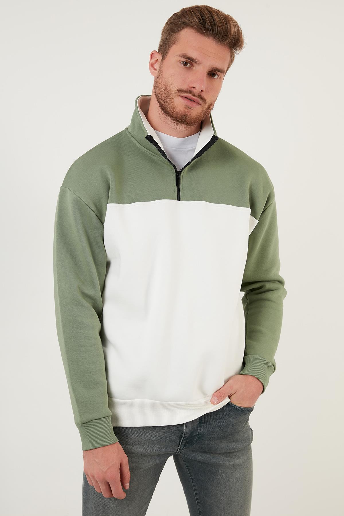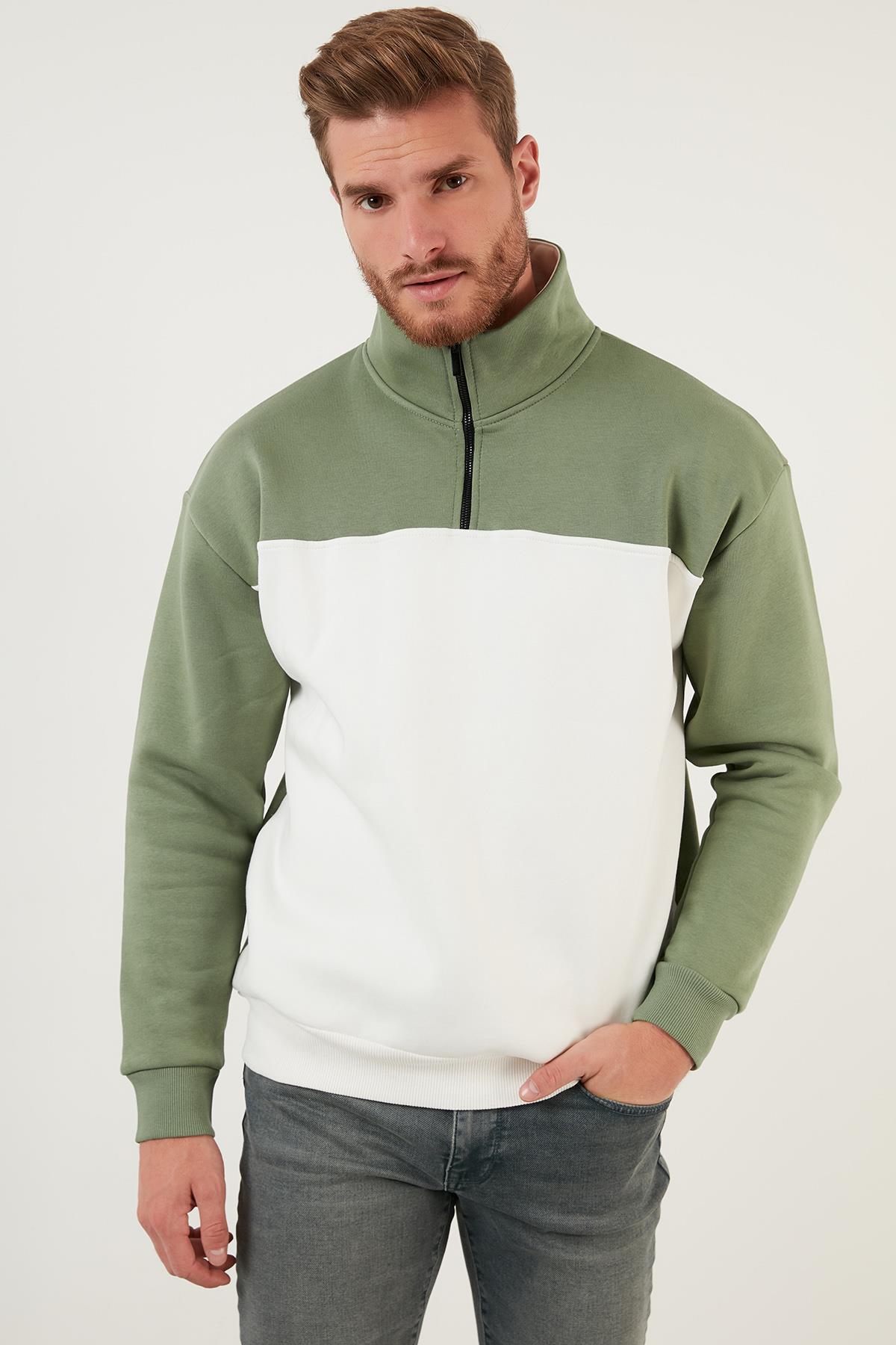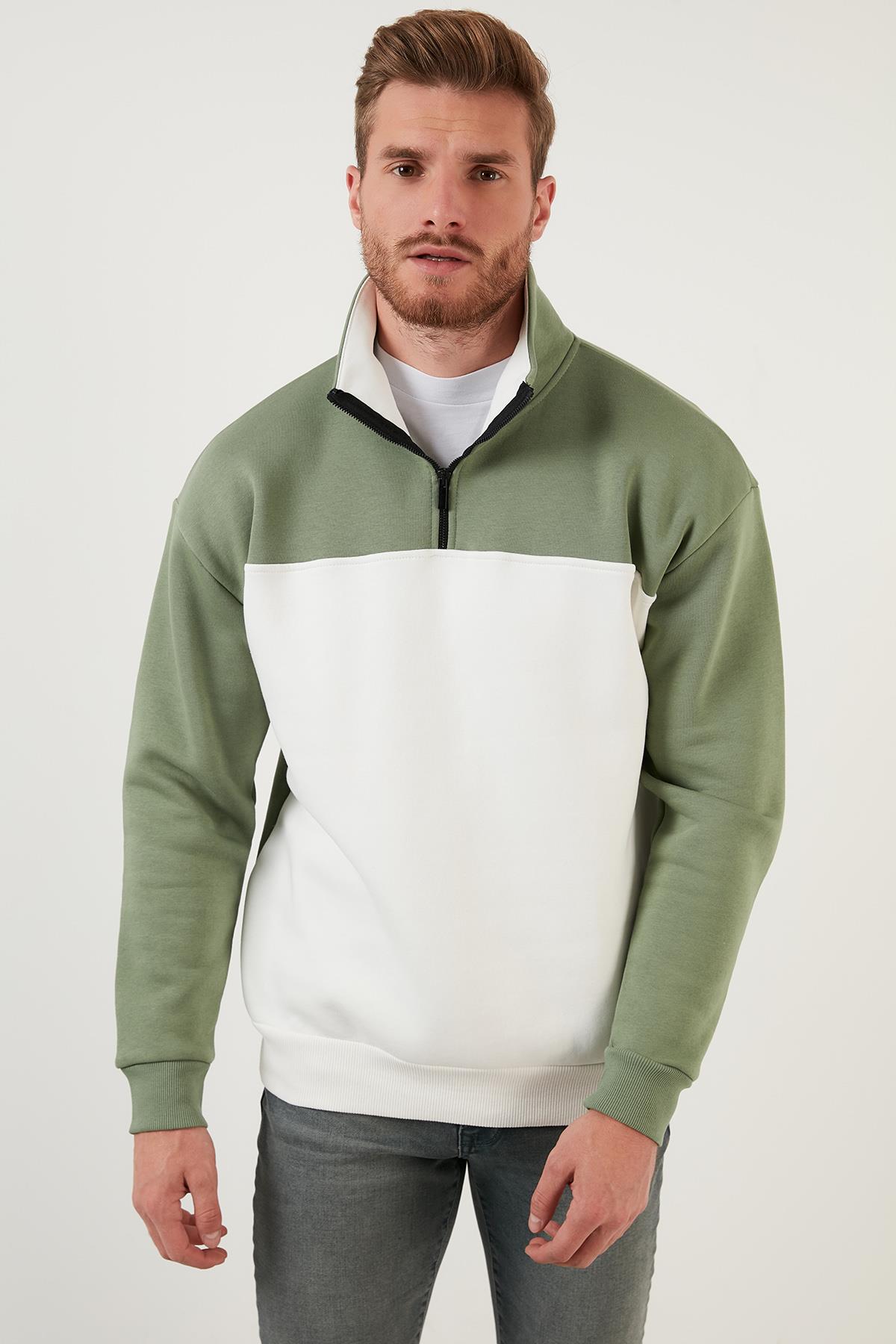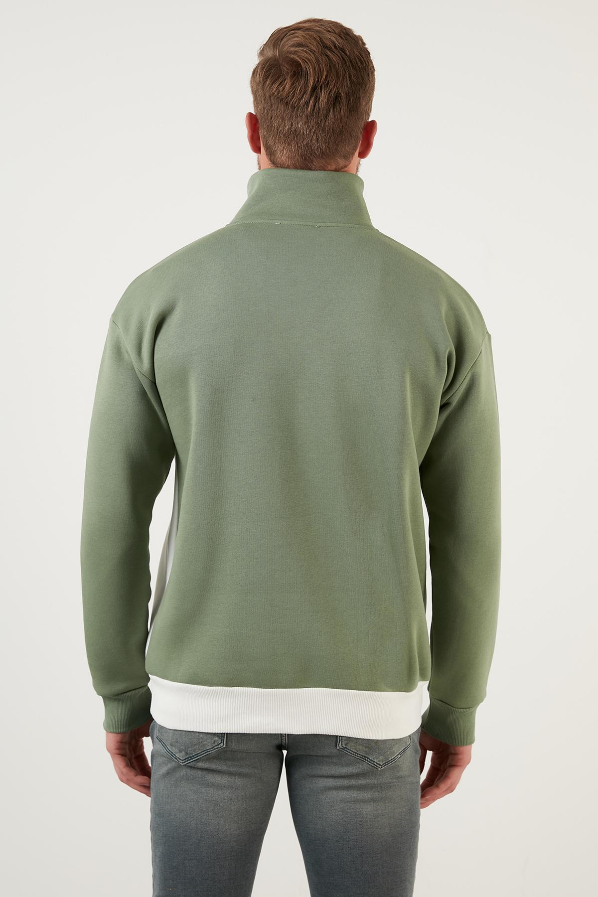 Buratti Regular Fit Fermuarlı Dik Yaka İçi Tüylü Yumuşak Şardonlu Kışlık Erkek Sweat 5905343 Elma