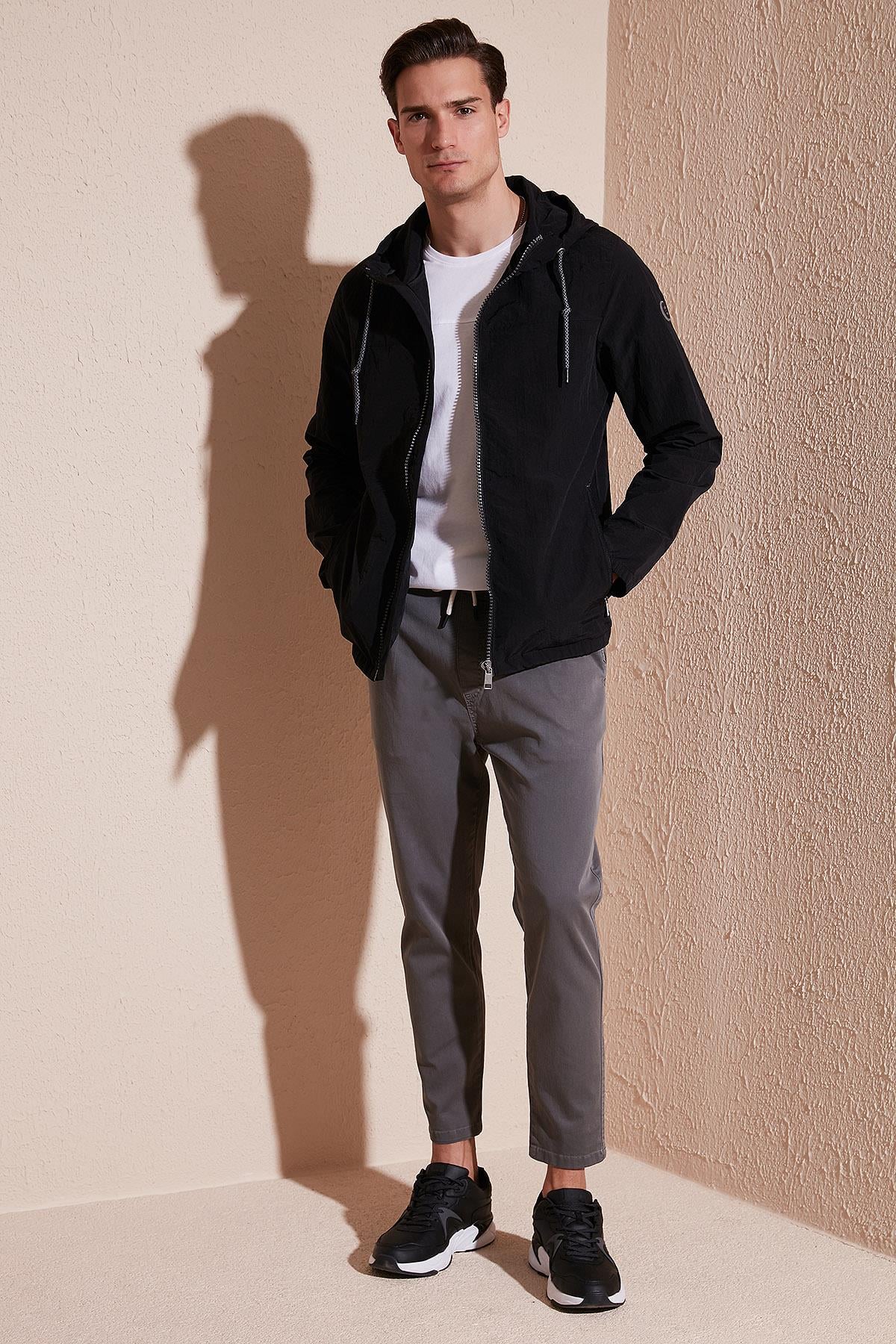 Buratti Regular Fit Kapüşonlu Cepli Mevsimlik Erkek Mont 497GLENN SİYAH