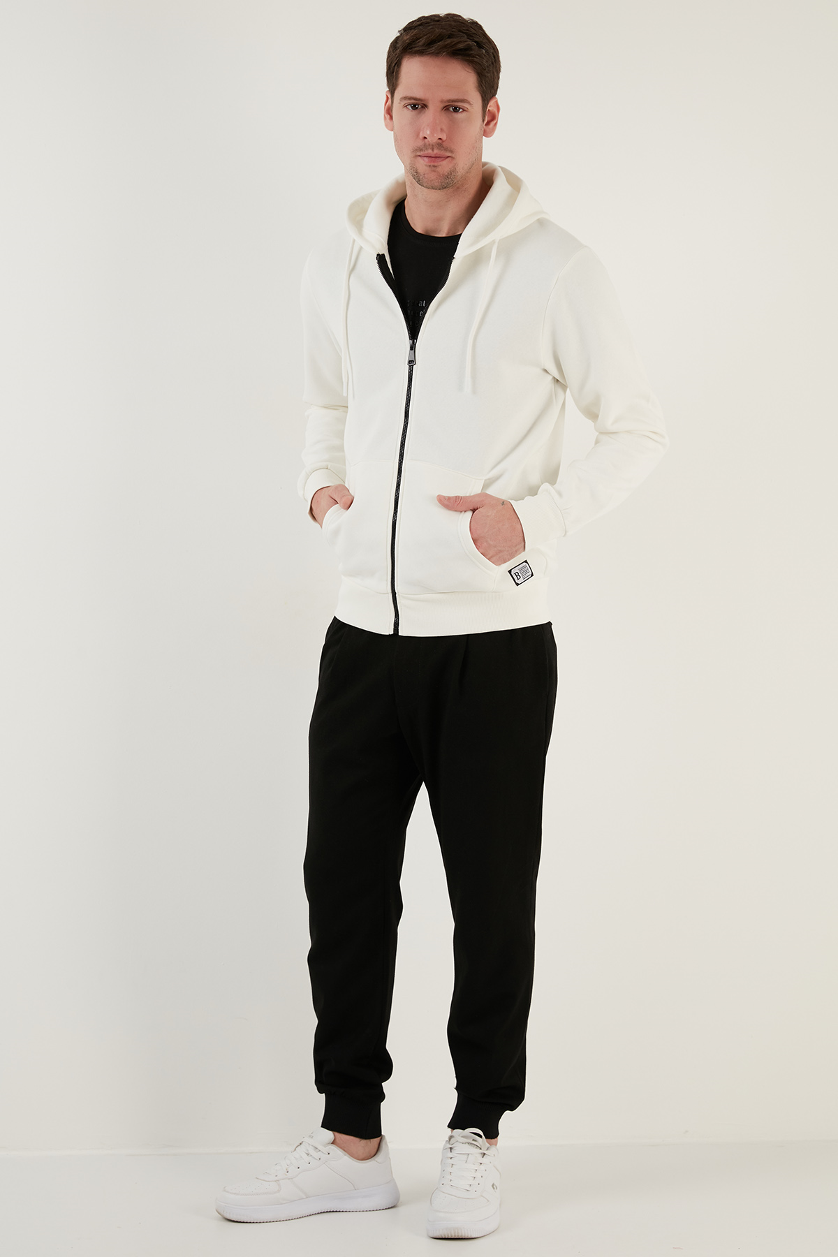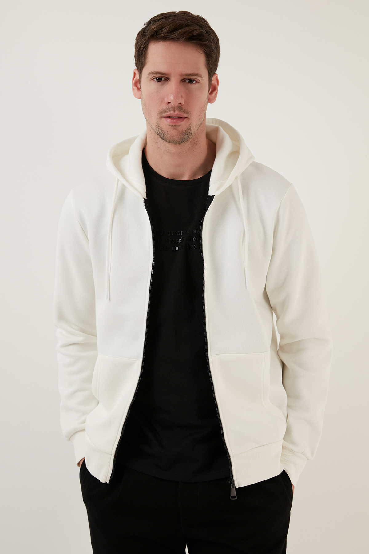 Buratti Regular Fit Kapüşonlu Fermuarlı İçi Tüylü Yumuşak Şardonlu Kışlık Erkek Sweat 5905340 EKRU