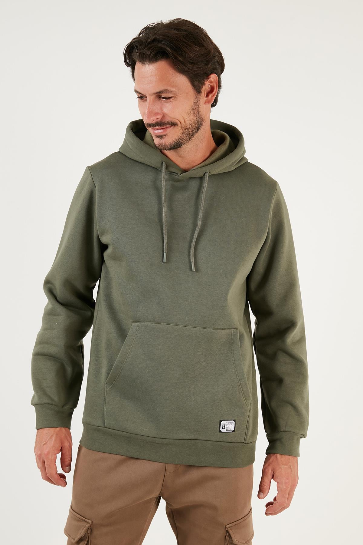 Buratti Regular Fit Kapüşonlu Kanguru Cepli İçi Tüylü Yumuşak Şardonlu Erkek Sweat 5905281 HAKİ