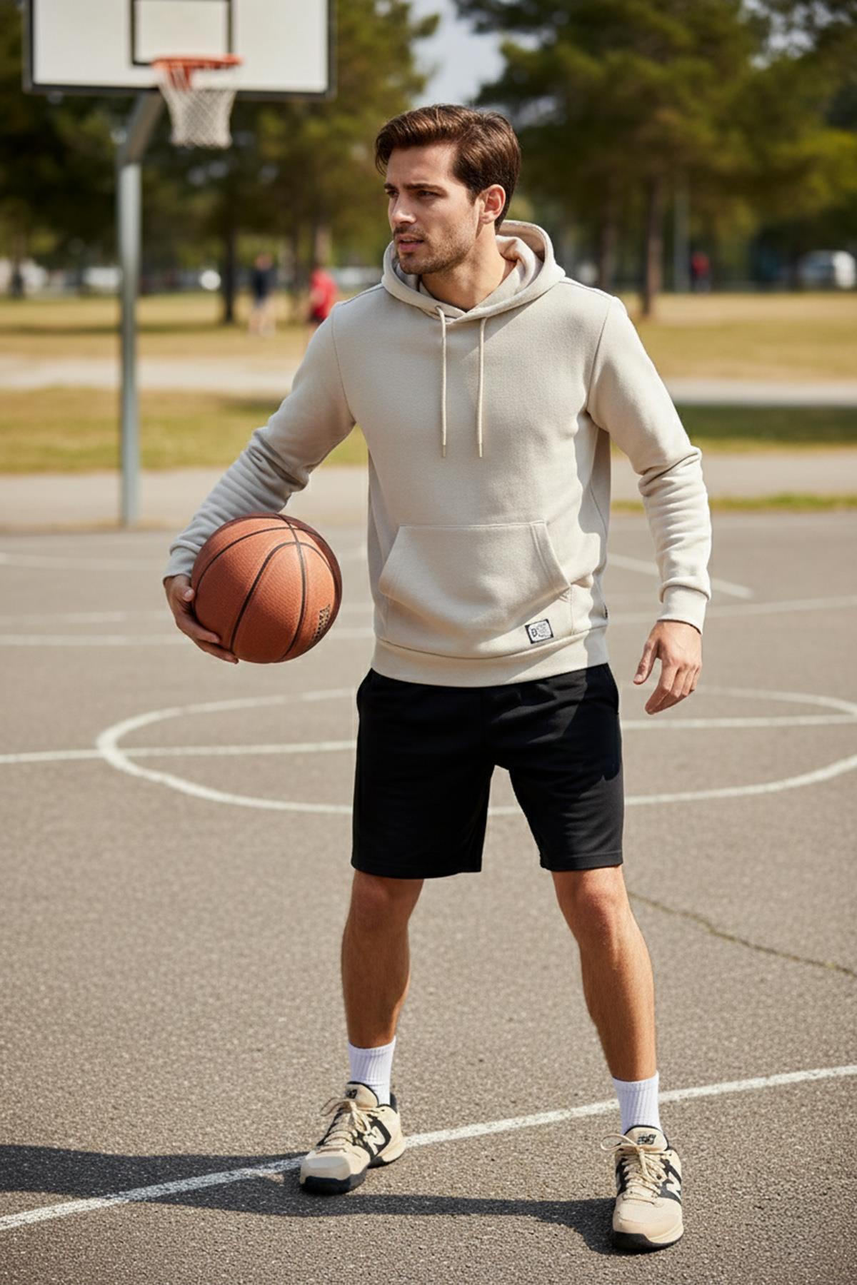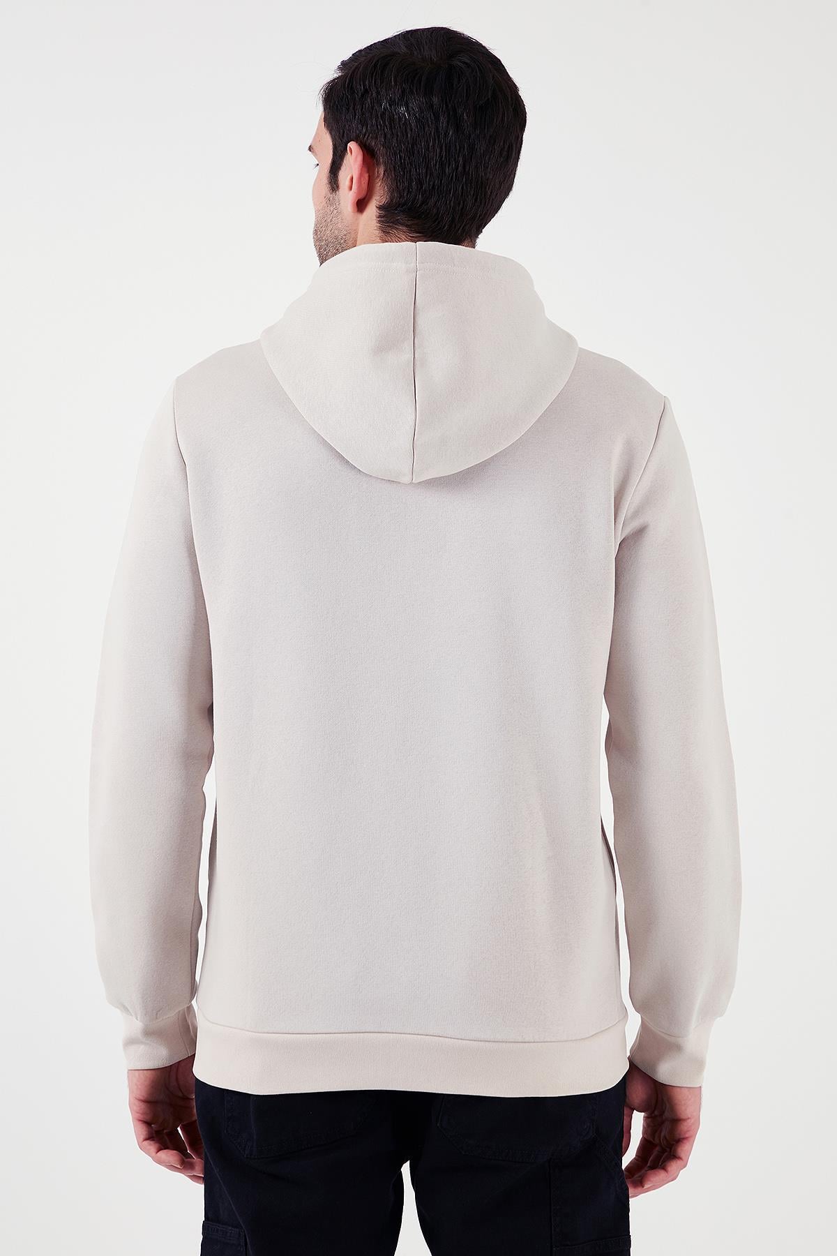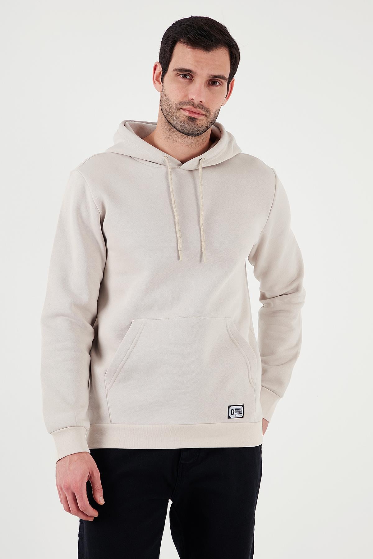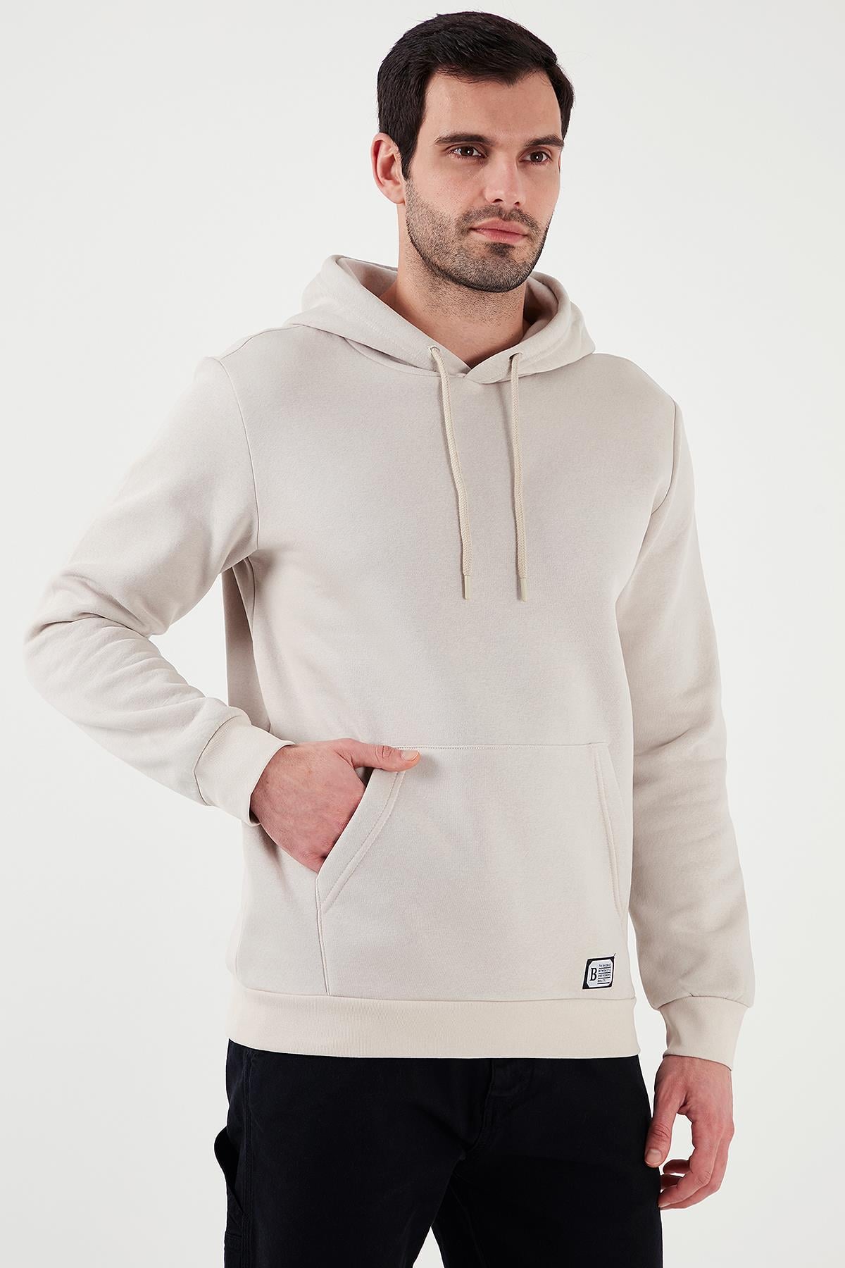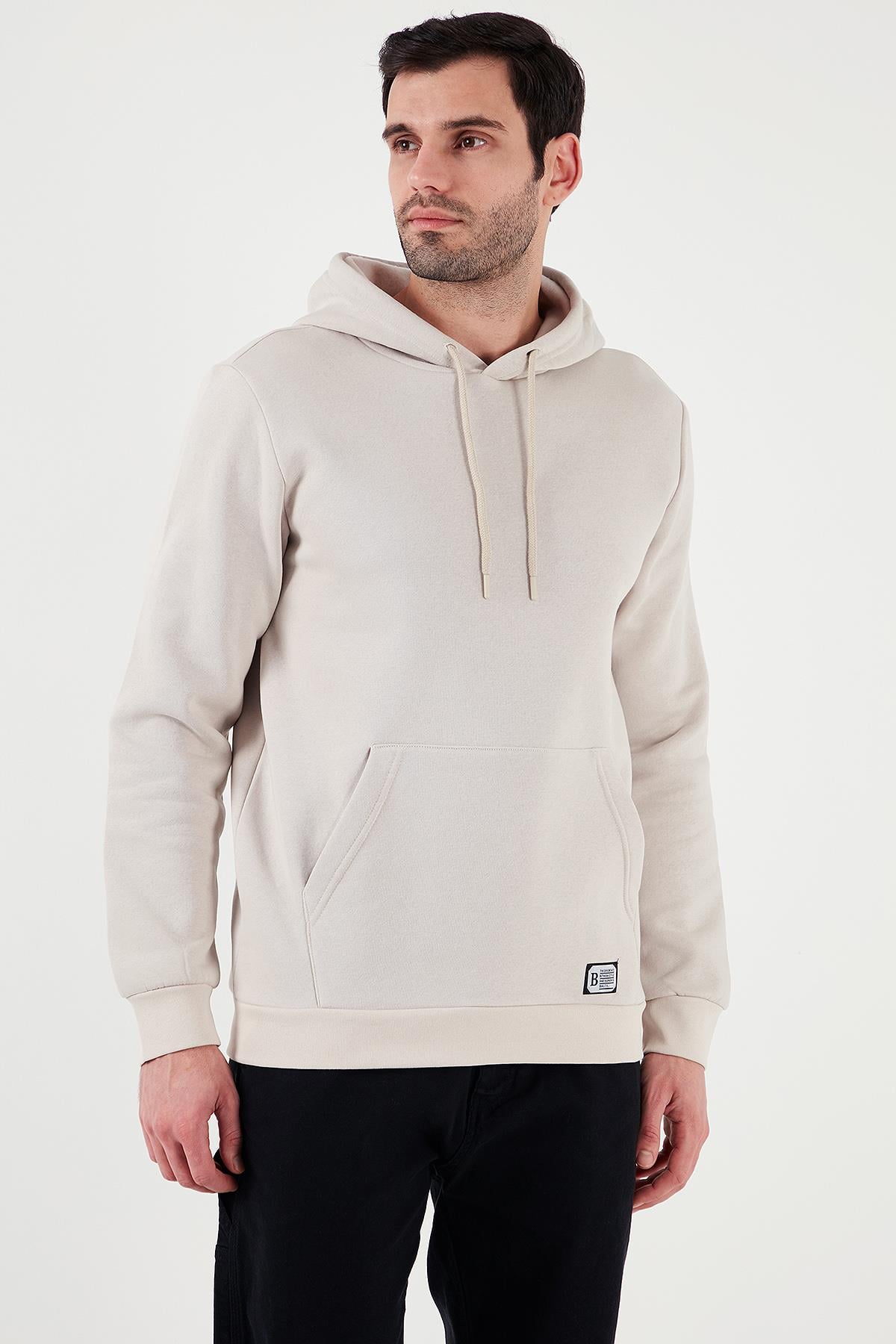 Buratti Regular Fit Kapüşonlu Kanguru Cepli İçi Tüylü Yumuşak Şardonlu Erkek Sweat 5905281 KREM