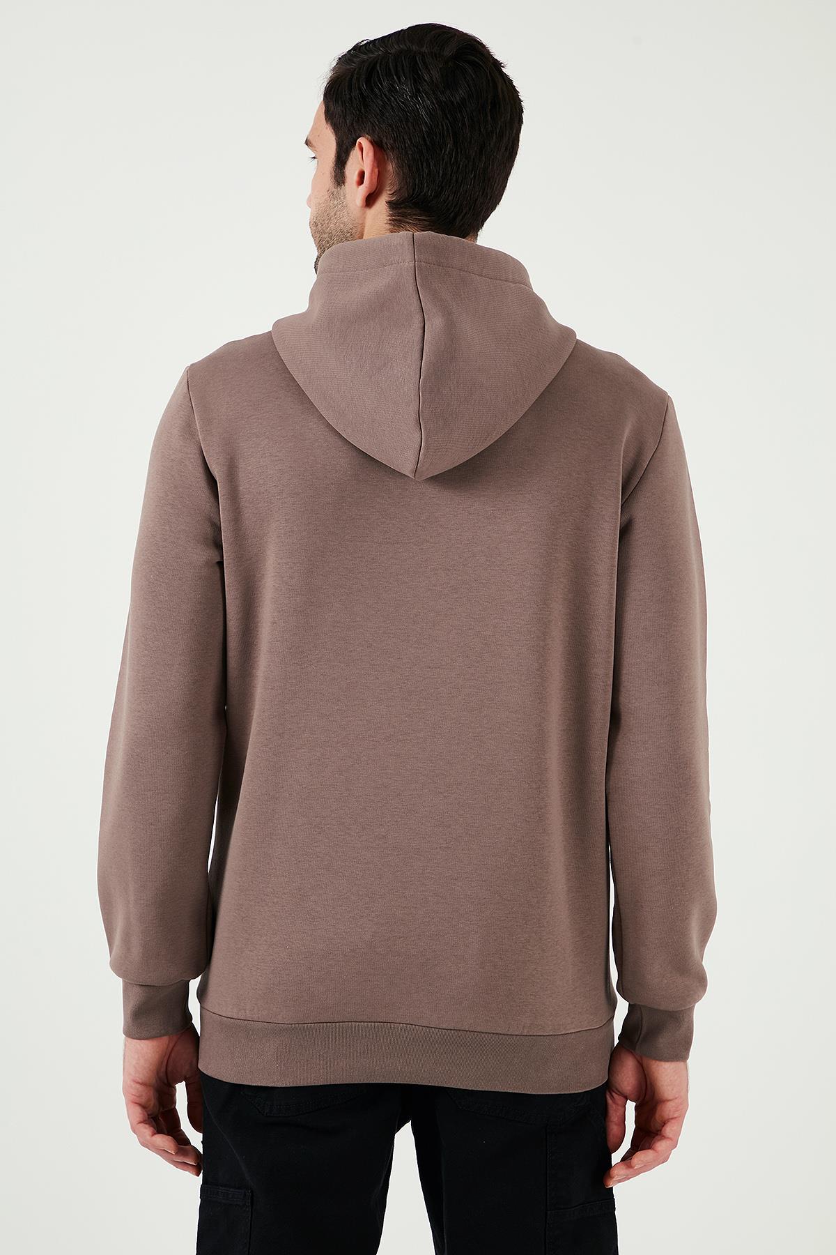 Buratti Regular Fit Kapüşonlu Kanguru Cepli İçi Tüylü Yumuşak Şardonlu Erkek Sweat 5905281 TOPRAK