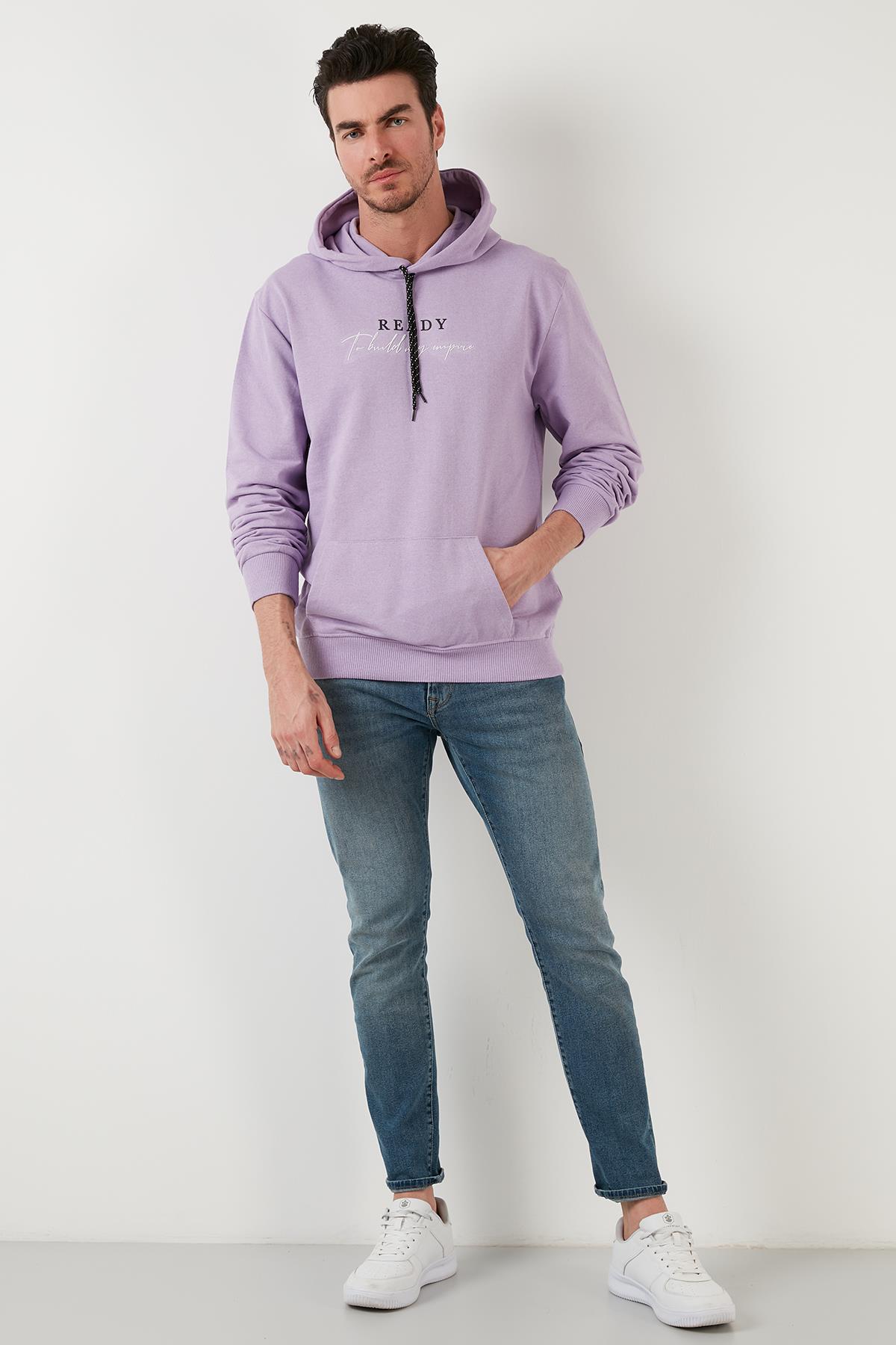 Buratti Slim Fit Baskılı Kapüşonlu Kanguru Cepli Pamuklu Erkek Sweat 5414020 LİLA