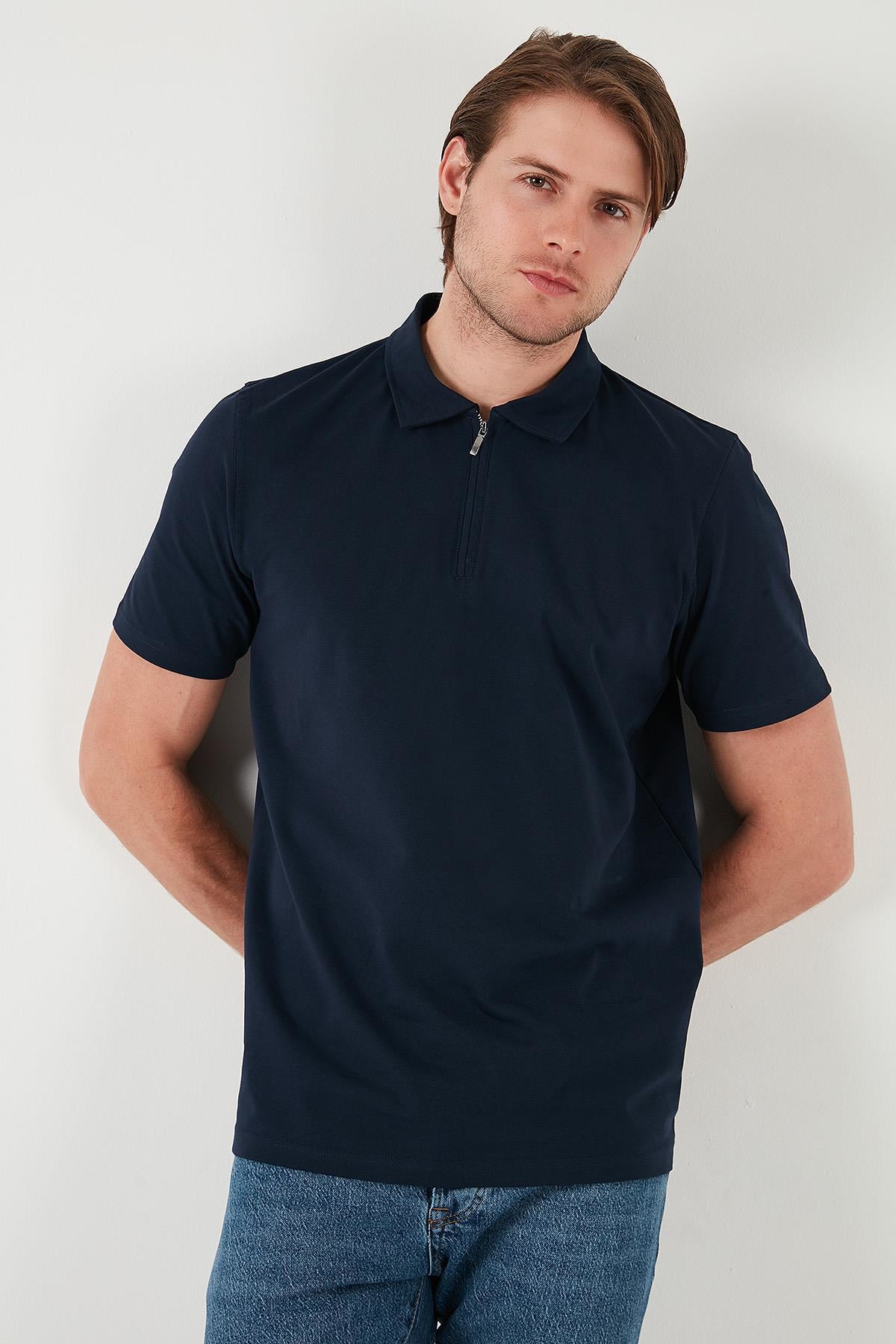 Buratti Streç Pamuklu Regular Fit Yarım Fermuarlı 3'lü Paket Erkek Polo Yaka T Shirt 5902972S3 İndigo-İndigo-Siyah